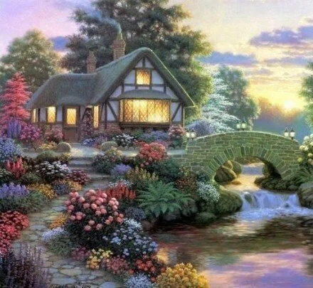 Лесная хижина мост пружина вода высшее качество вышивка рукоделие 1...