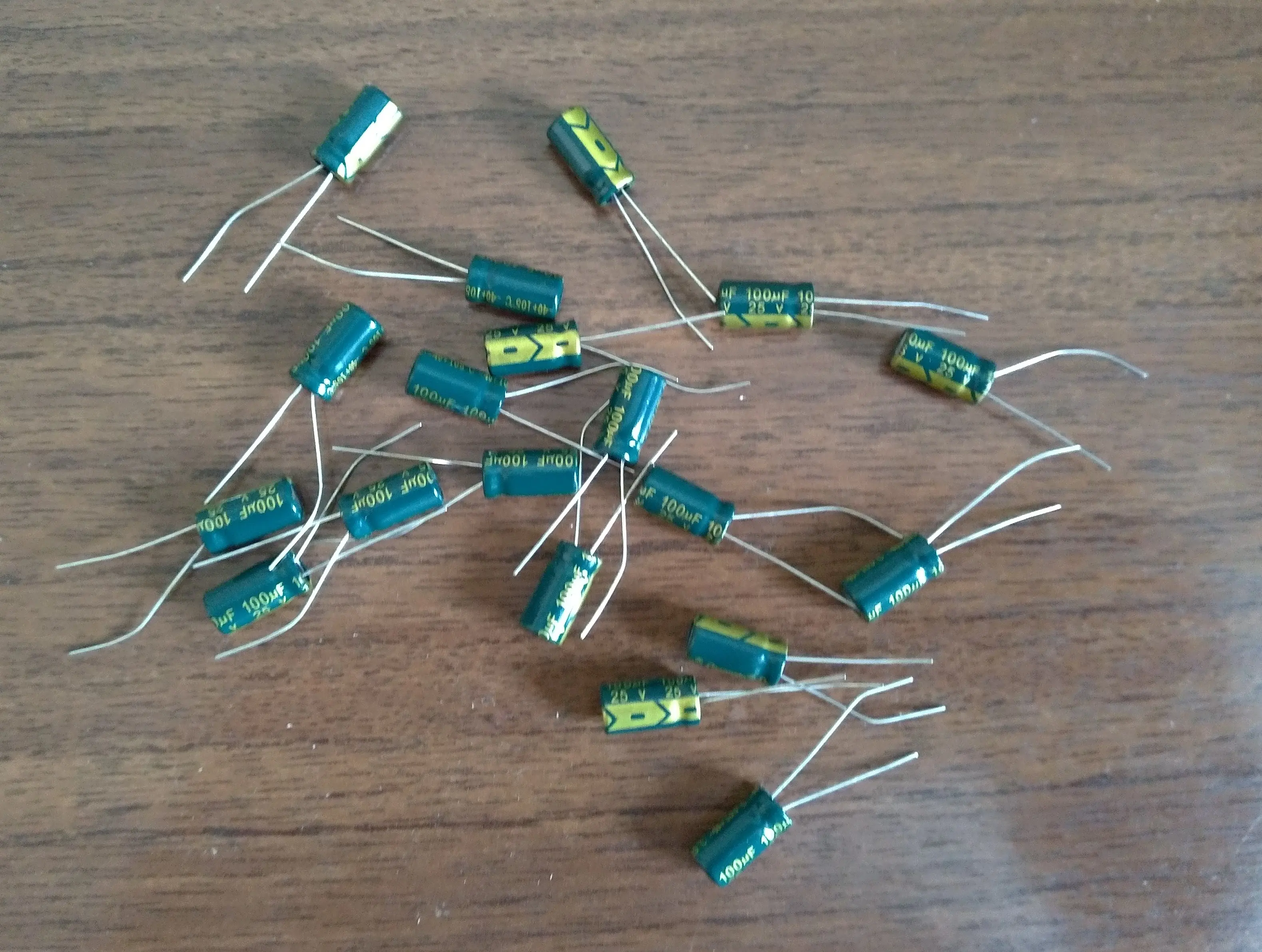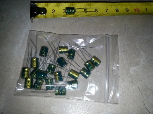 Заказал 470мкф*35В. На 35 по габаритам явно не тянут, на 25В такого же размера. У всех конденсаторов емкость в районе ~420 мкф, сопротивление около 0,26 - 0,3 Ом. Заказал 40 штук, получил 40 штук.