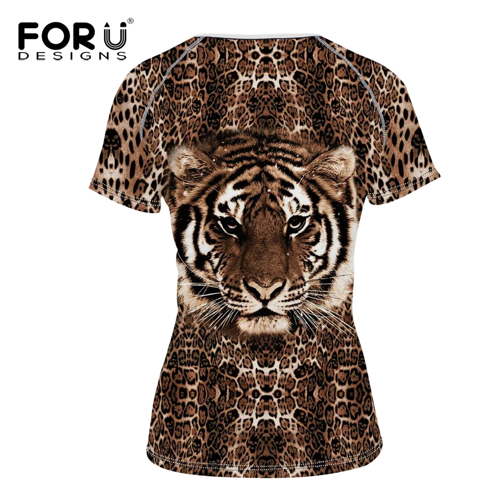 Новинка, женская футболка FORUDESIGNS с принтом тигра, летняя женская дышащая футболка с коротким рукавом и леопардовым принтом, футболка 1
