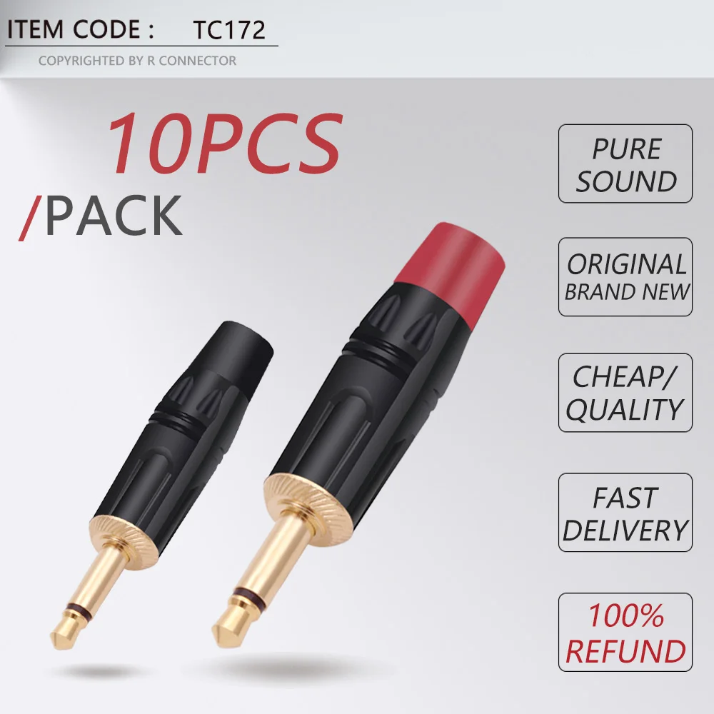 10 шт. 2 полюса Jack 3,5 мм моно-штекер провода Позолоченный разъем микрофона наушников Домкраты разъема R оптовая продажа