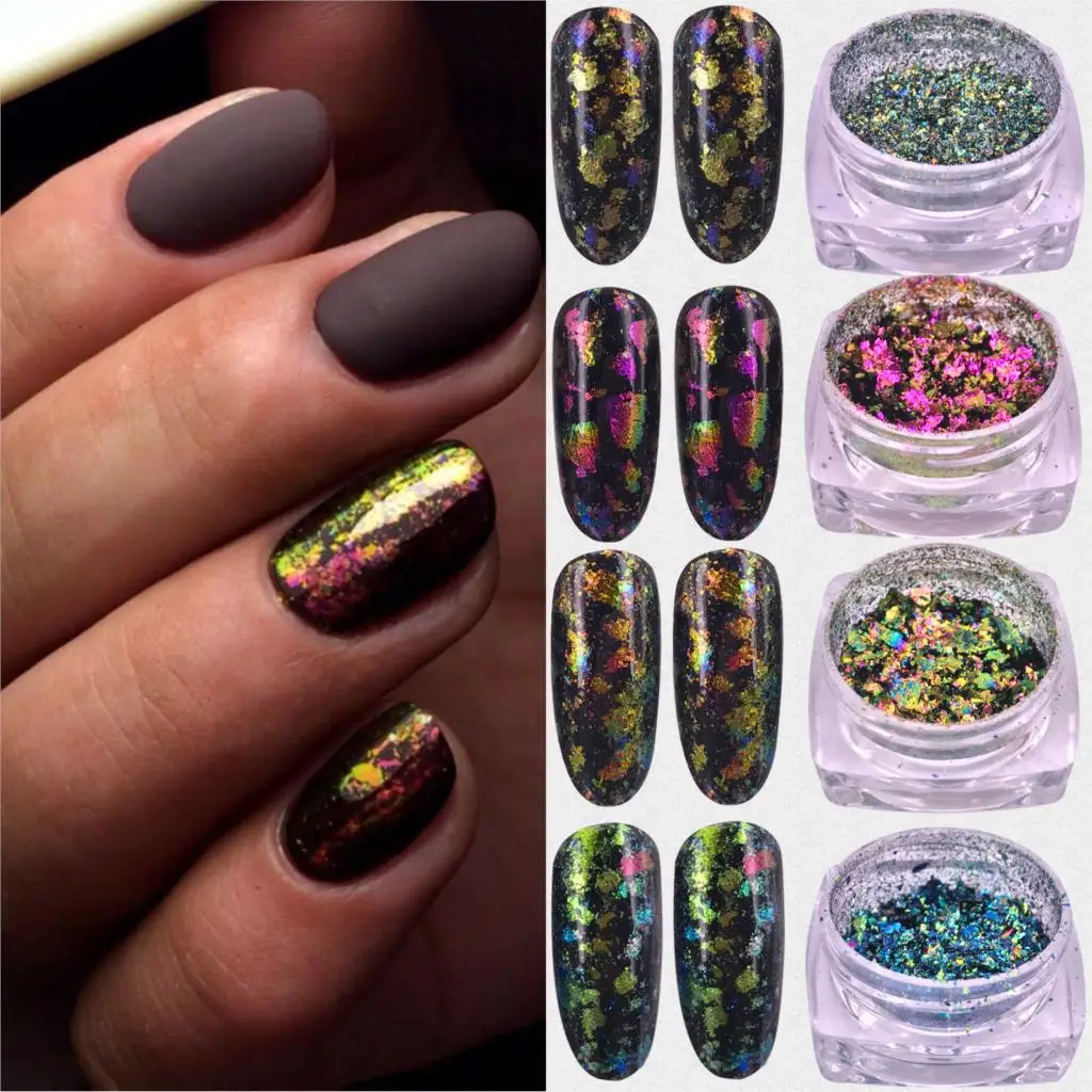 1 коробка 3D хлопья-Хамелеон сделай сам, блестки для ногтей, блестящий порошок, зеркальный хромовый пигмент, листы для дизайна ногтей, украшения