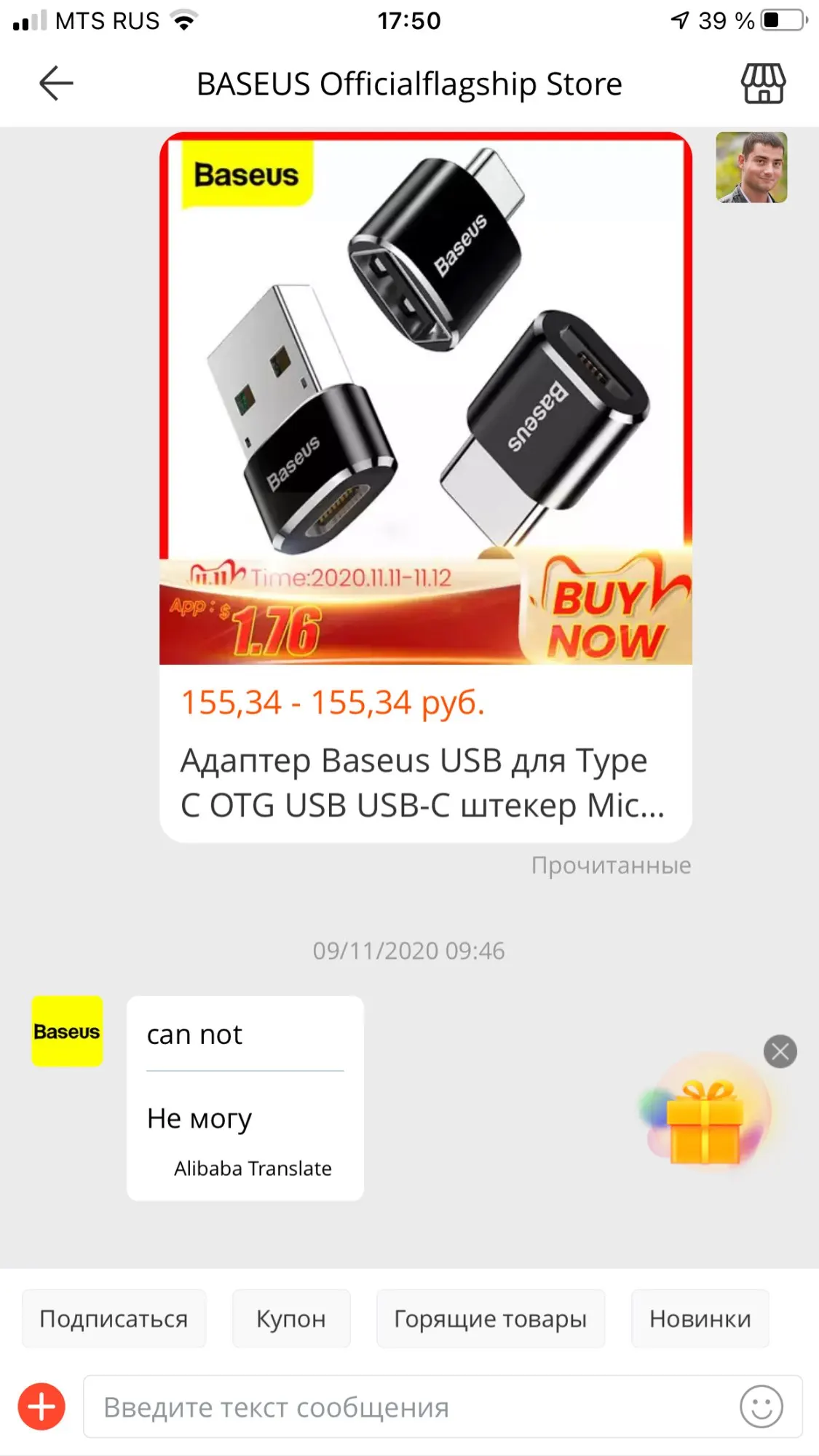 Страна: RU Color: Type C to USB Female Ships From: China Доставка: Cainiao Super Economy 27.09.2020