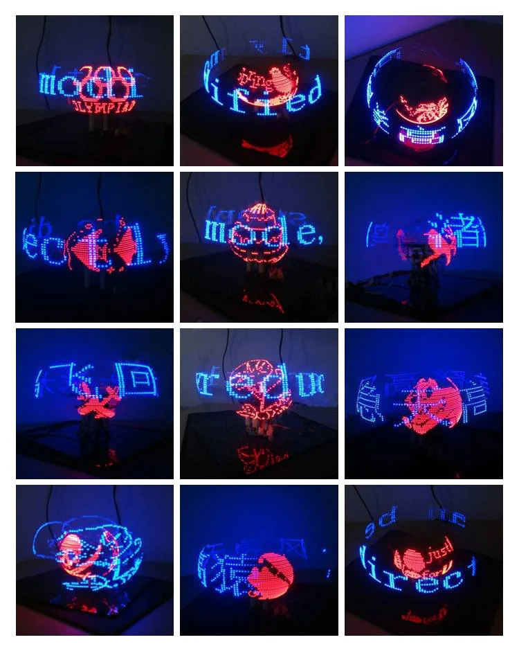 Системы источника питания Напряжение 12V2A (пожалуйста, используйте ваш собственный мощности), вращающийся материнская плата с использованием STM8S105K4T6 один-чип управления, подключаемого модуля 8 Мбит флэш-накопитель, текст, фотографии, анимация!