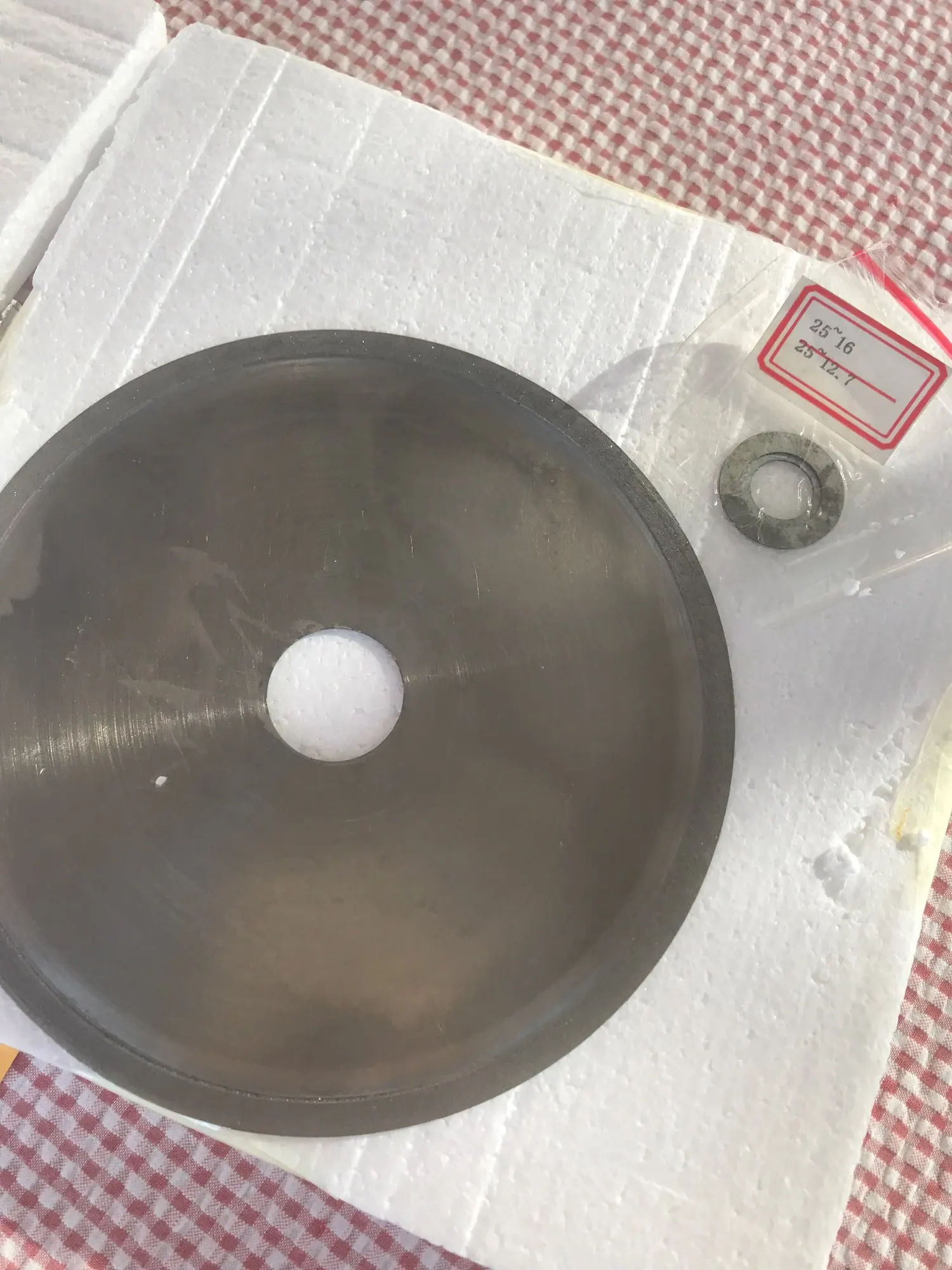Товар прибыл. Хорошая упаковка. Но есть проблема в центре отверстия. Для крошечного отверстия помещаются кусочки в толщину дополнительного тонкого диска. Но диск проходит весь путь в шпиндель моей машины с этой штукой. Я заказал 5/8 отверстие. Такой дизайн неверный. Этот диск не будет работать для меня. В этом случае продавец должен найти решение.