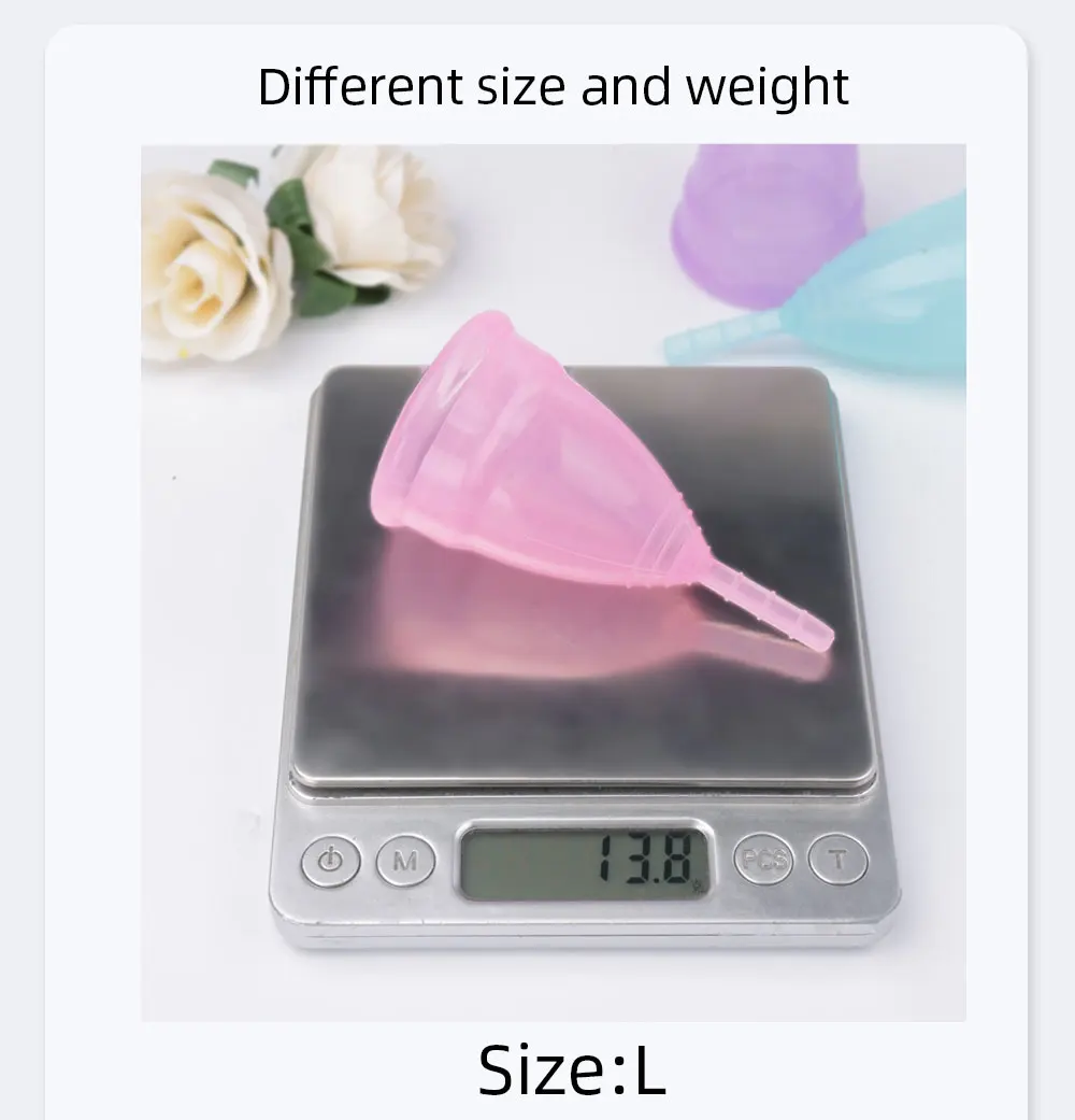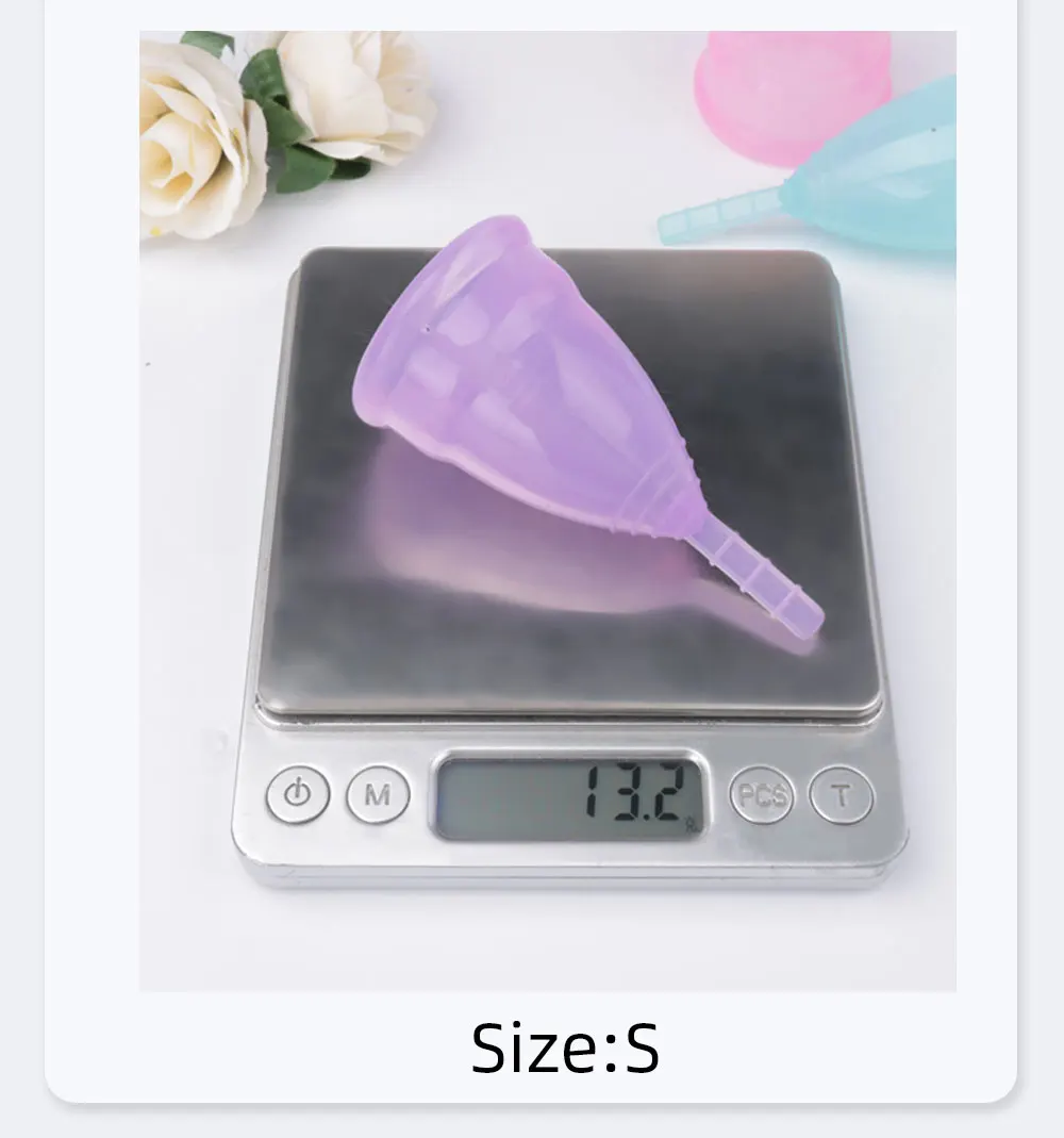 Упаковка: 2 * менструальная чаша (размер S и sizeL) + 1 * тканевый мешок + Инструкция (без коробки)Цвет: фиолетовый, белый, розовый, синийРазмер S: (для женщин, не родивших ребенка или женщин в возрасте до 25 лет)Размер L: (для женщин, родивших ребенка или старше 25 лет)