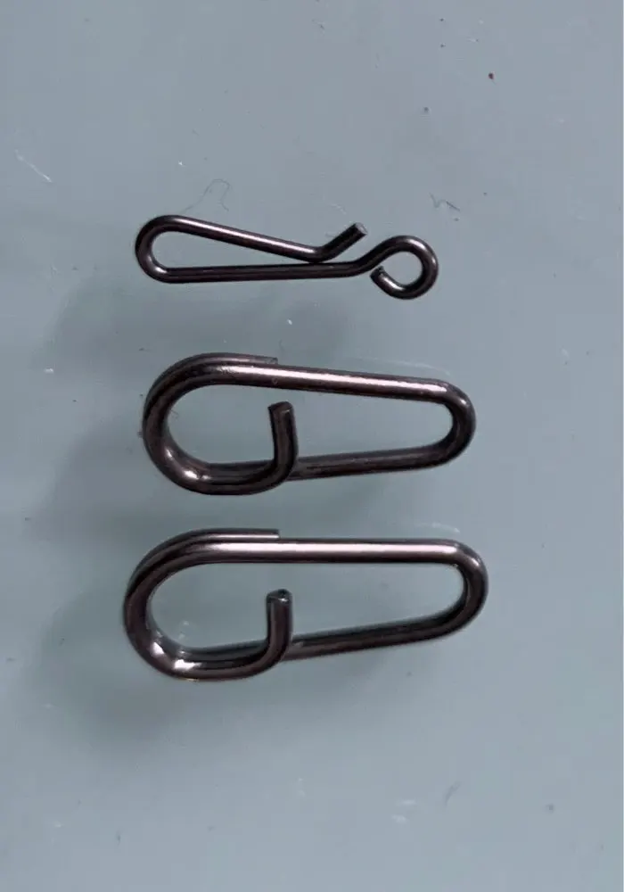 Они очень прочные. К сожалению, они не обслуживают меня или для спиннинга и гораздо меньше для rockfishing. Вы в буквальном порядке не можете надеть приманку. Они слишком толстые. Купите 16 и 18. Вам нужны плоскогубцы для установки декорации. Я отправлю фотографии по сравнению с фотографиями, которые я использую в настоящее время.