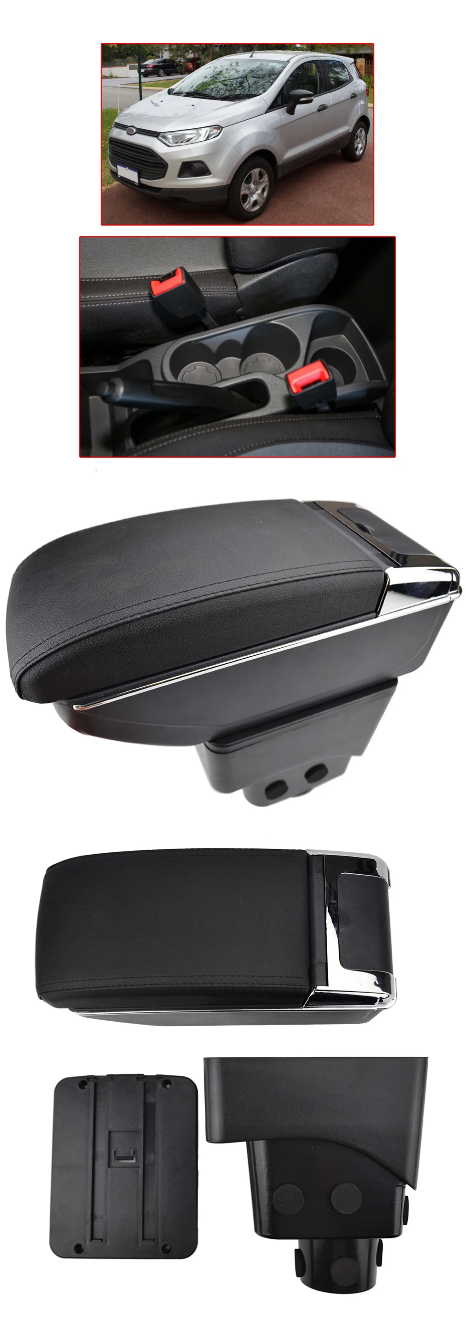 Контейнер для хранения центральной консоли, двухслойный подлокотник из искусственной кожи 2013-2017 для Ford Ecosport 2014 2015 2016