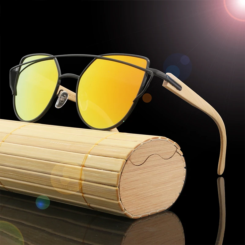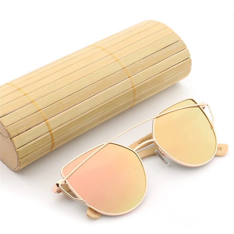 Модные женские зеркальные солнцезащитные очки розовые золотые солнцезащитные очки с бамбуковыми деревянными поляризованными линзами UV400 в комплекте с бамбуковым чехлом