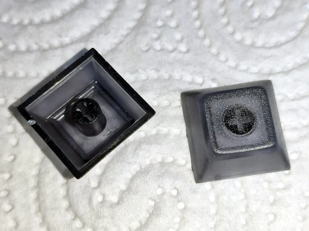 Высококачественные колпачки для ключей. Моя единственная жалоба заключается в том, что плюс-образное отверстие в нижней части предназначено для переключателей Cherry MX немного туго. Я попробовал переключатели Cherry MX и kailh, и все они потребовали больше силы, чтобы перейти по сравнению с другими клавишами, которые я использовал.