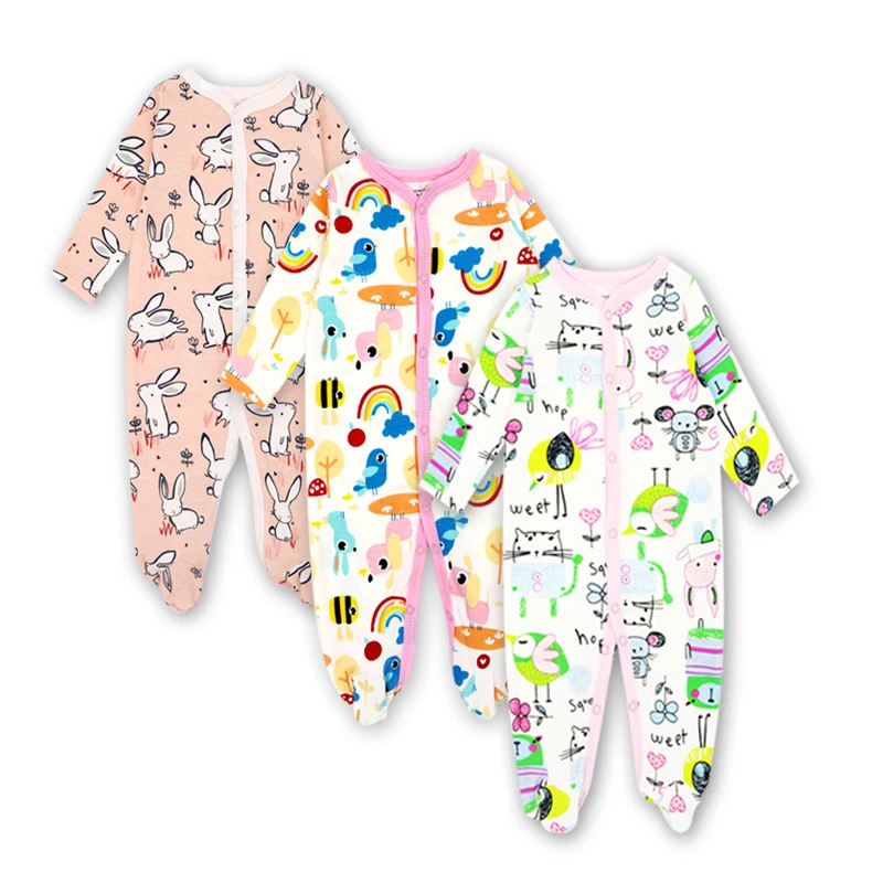 Одежда для новорожденных девочек и мальчиков детские комбинезоны с длинным рукавом 100% хлопок Удобная детская пижама с мультяшным принтом