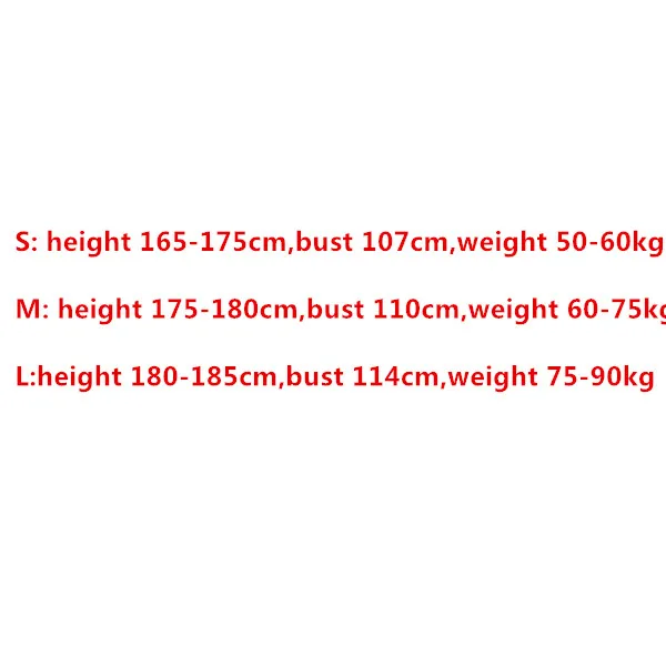 L:Рост 180-185 см, обхват груди 114 см, Вес 75-90 кг
