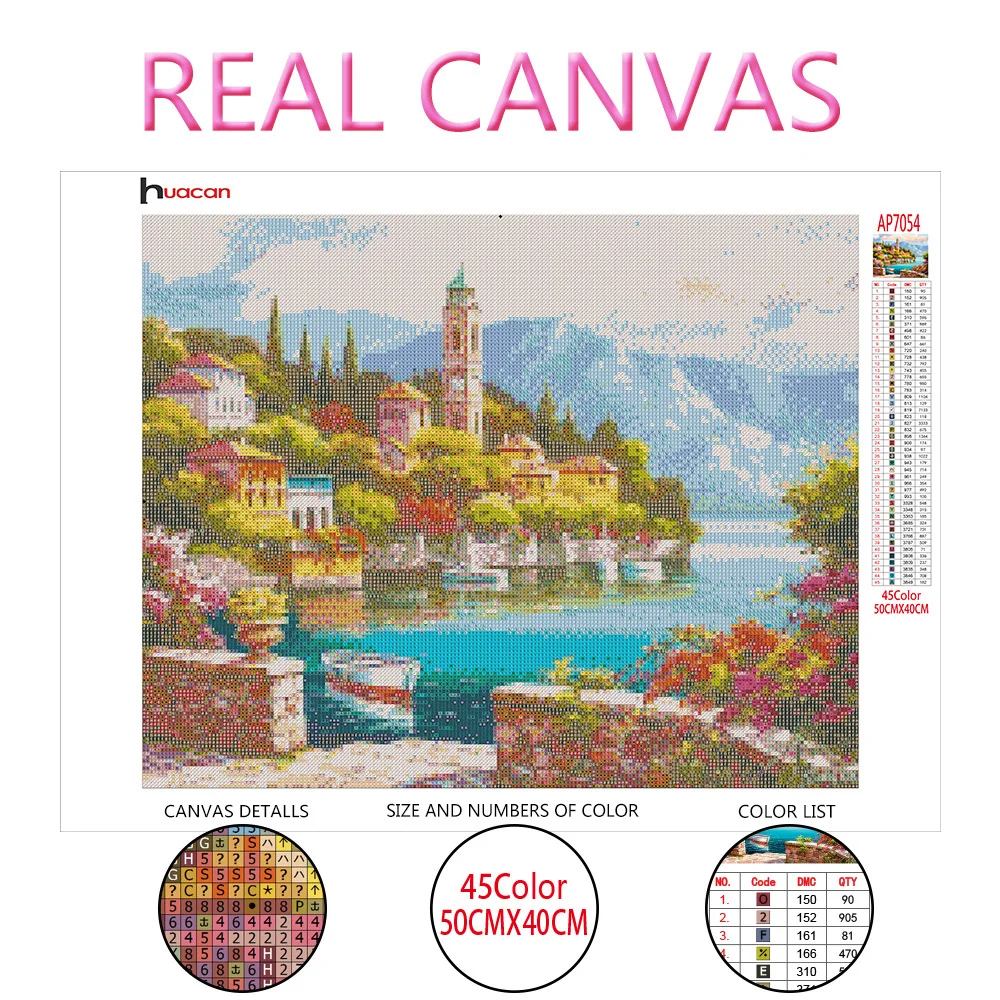 Алмазная живопись Huacan, Алмазная мозаика 5D, картина с изображением побережья, квадратные стразы, украшение для дома