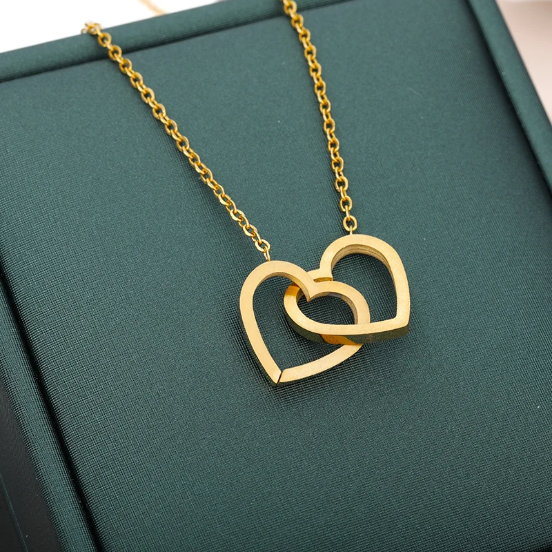 V привлечь 10 шт. ручной работы Двойное сердце Цепочки и ожерелья пары Jewellery Нержавеющаясталь Чиан ожерелье Подвеска невесты свадебные подарок