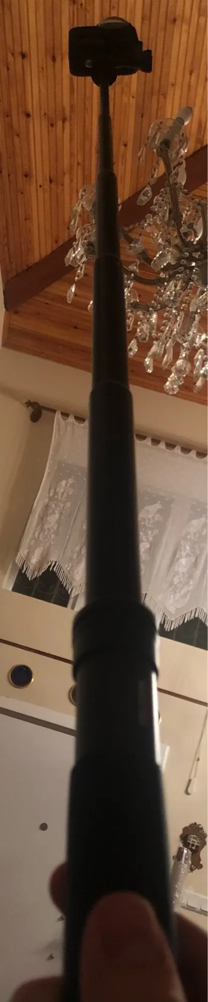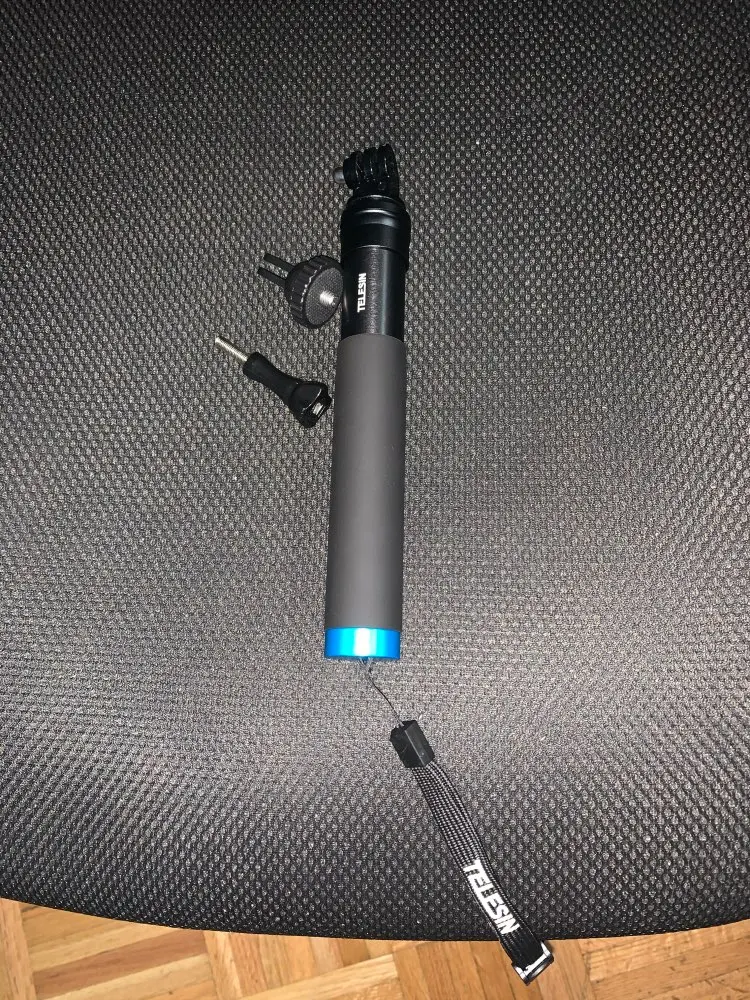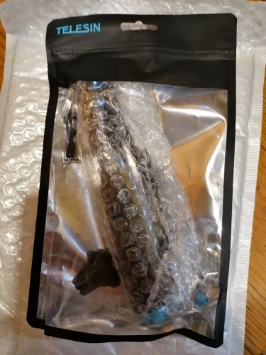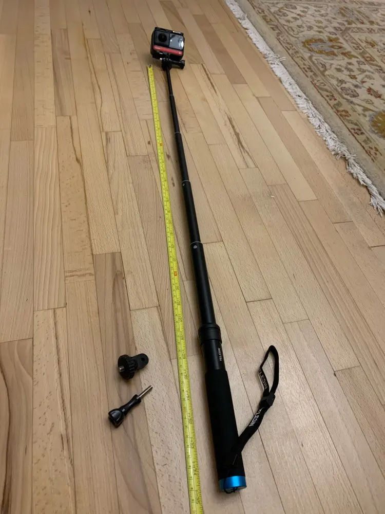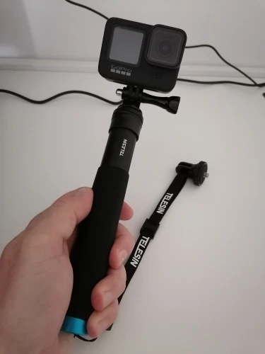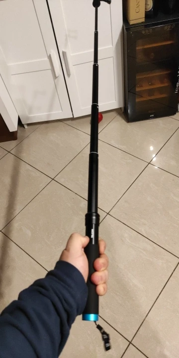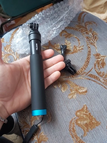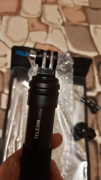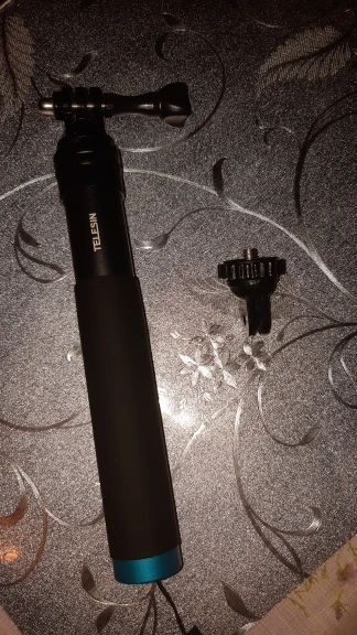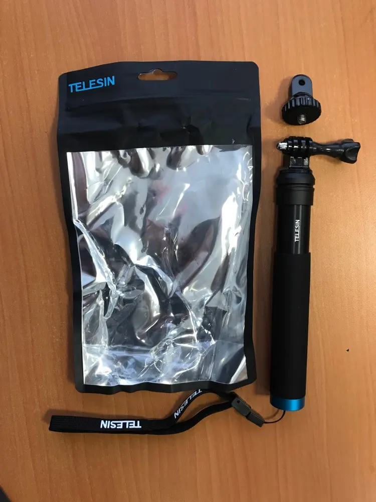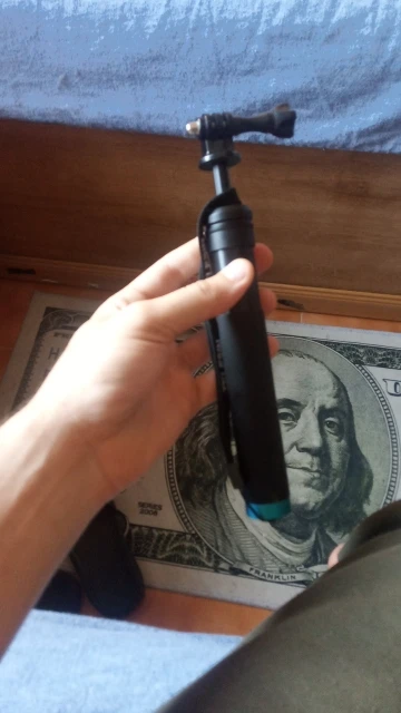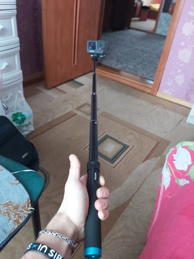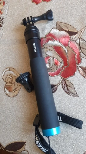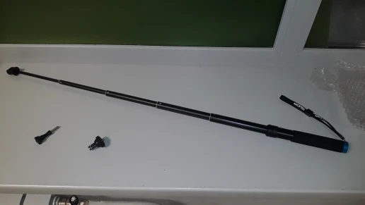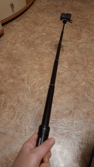 Очень быстрая доставка до Москвы. Раскладывается туговато, но люфтов нет, но думаю разработается. Отлично работает в связке с камерой insta 360 R (камера его полностью маскирует без артефактов) длинны 90 см достаточно для «плоского видео селфи» на сноуборде, вырезанного из 360 градусного видео. В сложенном состоянии вместе с камерой 27 см (помещается в карман для маски сноубордической куртки).