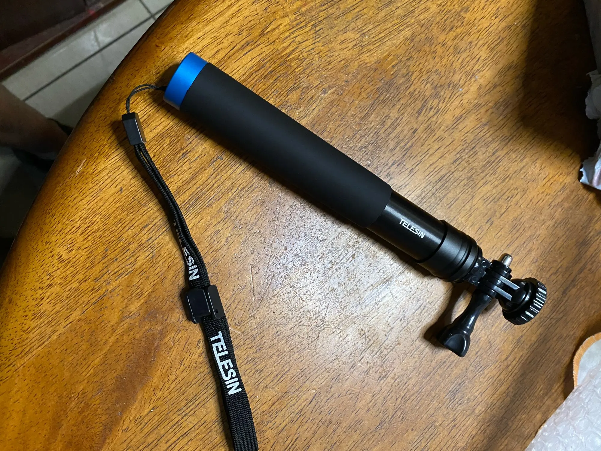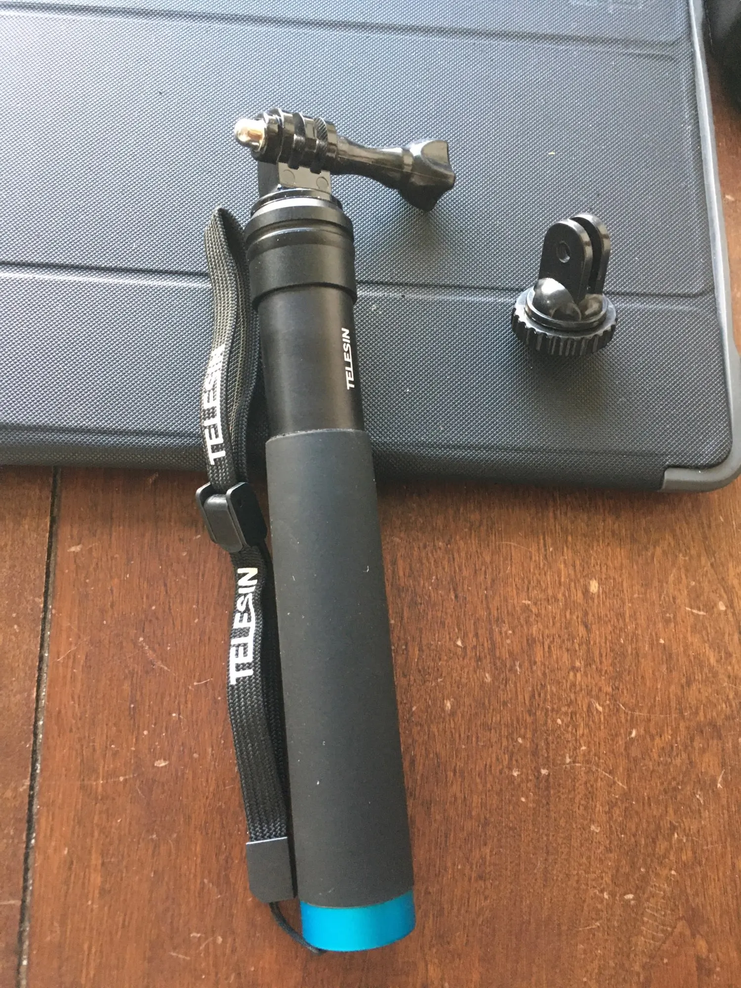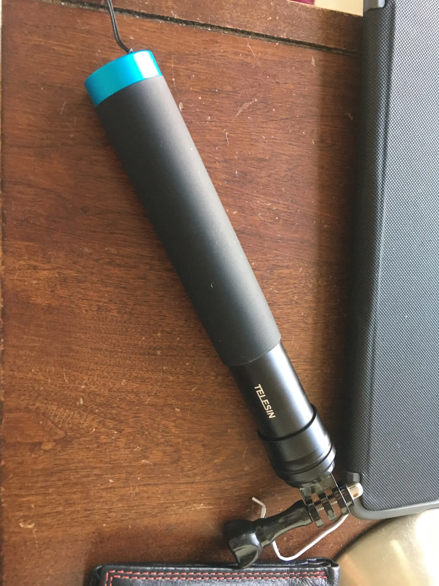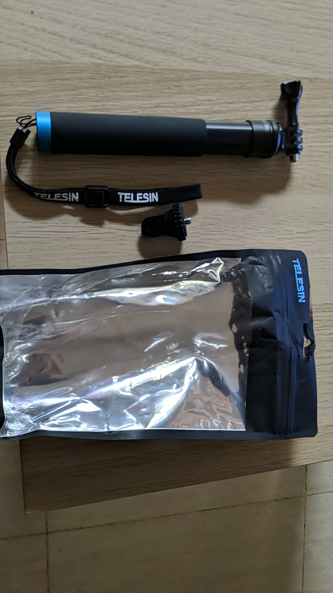 Очень быстрая доставка до Москвы. Раскладывается туговато, но люфтов нет, но думаю разработается. Отлично работает в связке с камерой insta 360 R (камера его полностью маскирует без артефактов) длинны 90 см достаточно для «плоского видео селфи» на сноуборде, вырезанного из 360 градусного видео. В сложенном состоянии вместе с камерой 27 см (помещается в карман для маски сноубордической куртки).