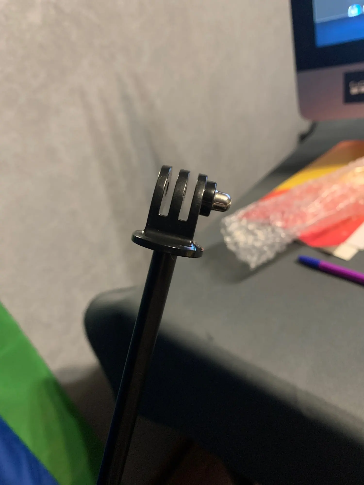 Хорошая, но пропущенная гайка, которая позволяет привинтить камеру к палке. Стандартная гайка сразу же обнаружена в моем ящике инструментов, в противном случае хорошее качество.