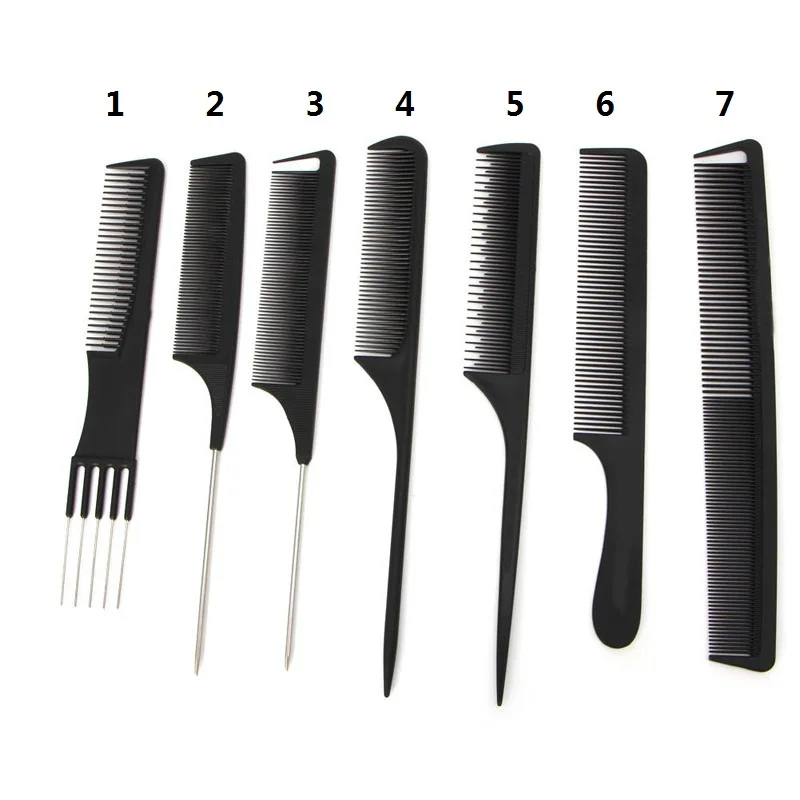 Расческа для волос черная с мелкими зубьями, 7 типов