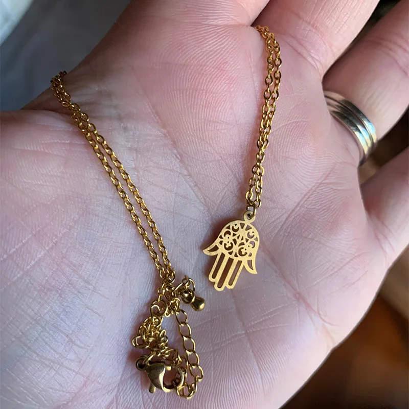 V привлечь Нержавеющаясталь Luck hasma руку кулон Цепочки и ожерелья Йога Jewelry 2017, женская обувь Длинной Цепи Ожерелье Колье Рождественский подарок