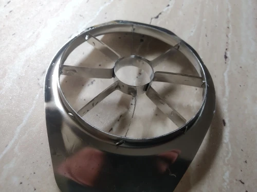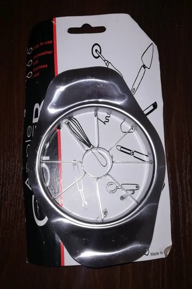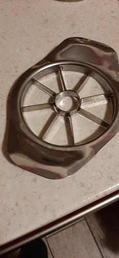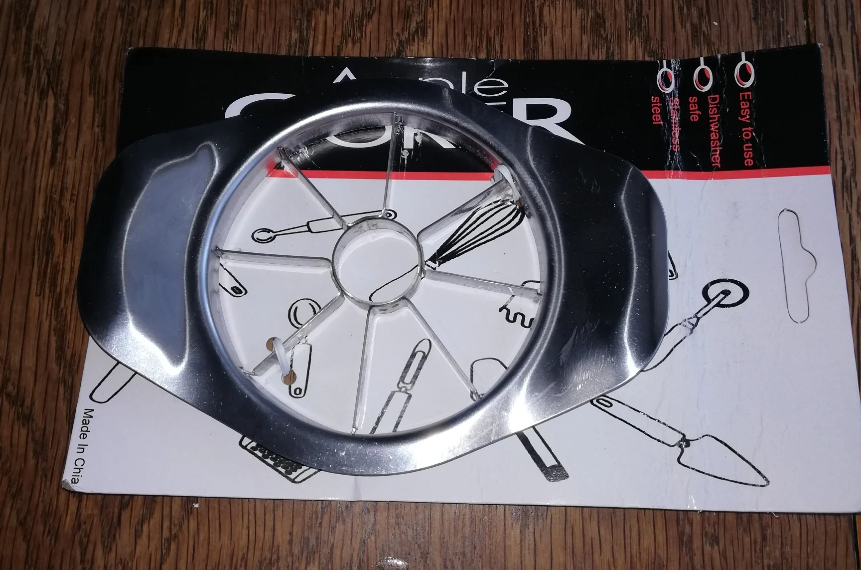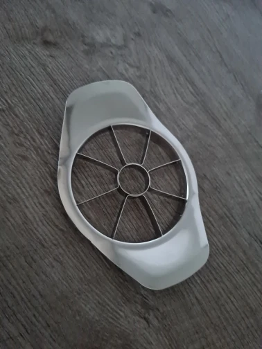 неожиданно классная штука. очень маленькая серединка отходы от целого яблока минимальны. нарезает одинаковыми кусочками одним движением. гаджет полностью металлический поэтому повредить его практически невозможно. очень благодарна продавцу за качественную и полезную вещь