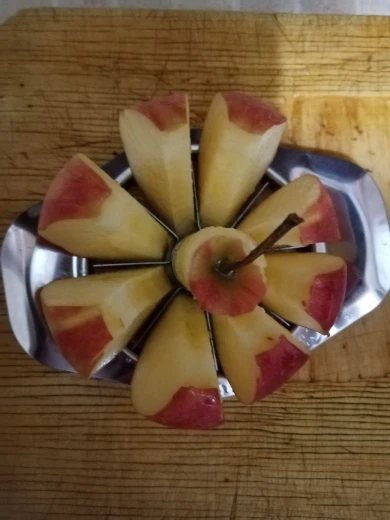 Супер и эффективно. Это делает красивые равномерные яблоки. Больше проблем с детьми. У каждого есть своего района того же количества.