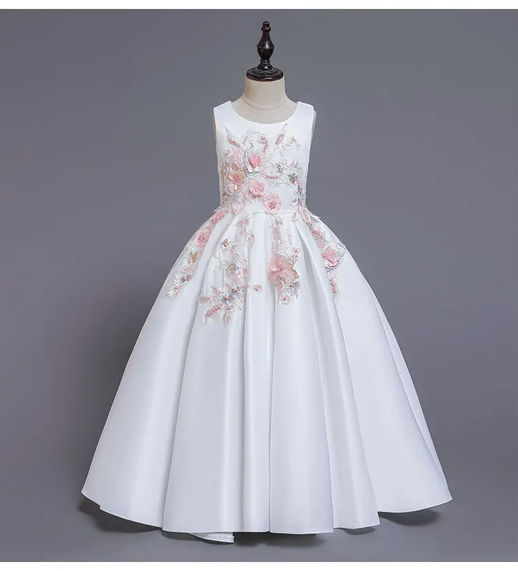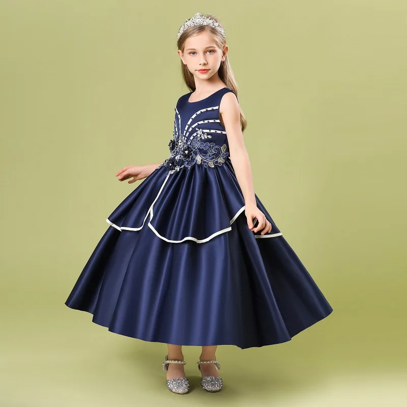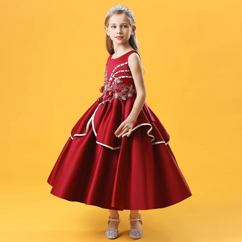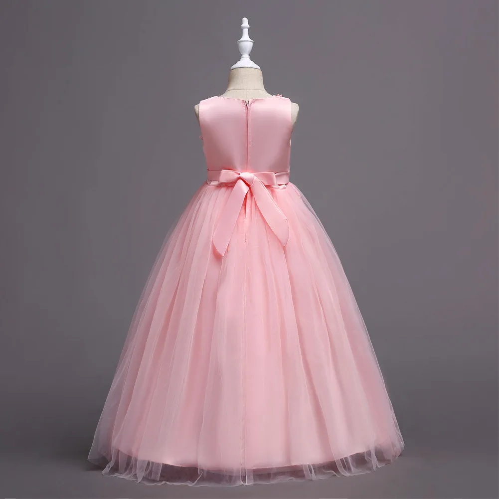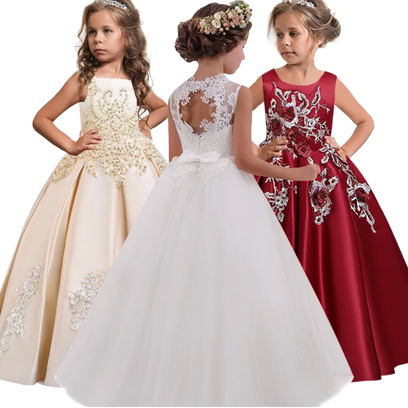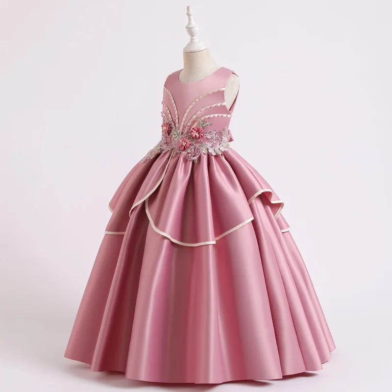 Новинка 2022, кружевное платье принцессы, детское длинное платье с цветочной вышивкой для девочек, детское официальное бальное платье, платья для свадебной вечеринки