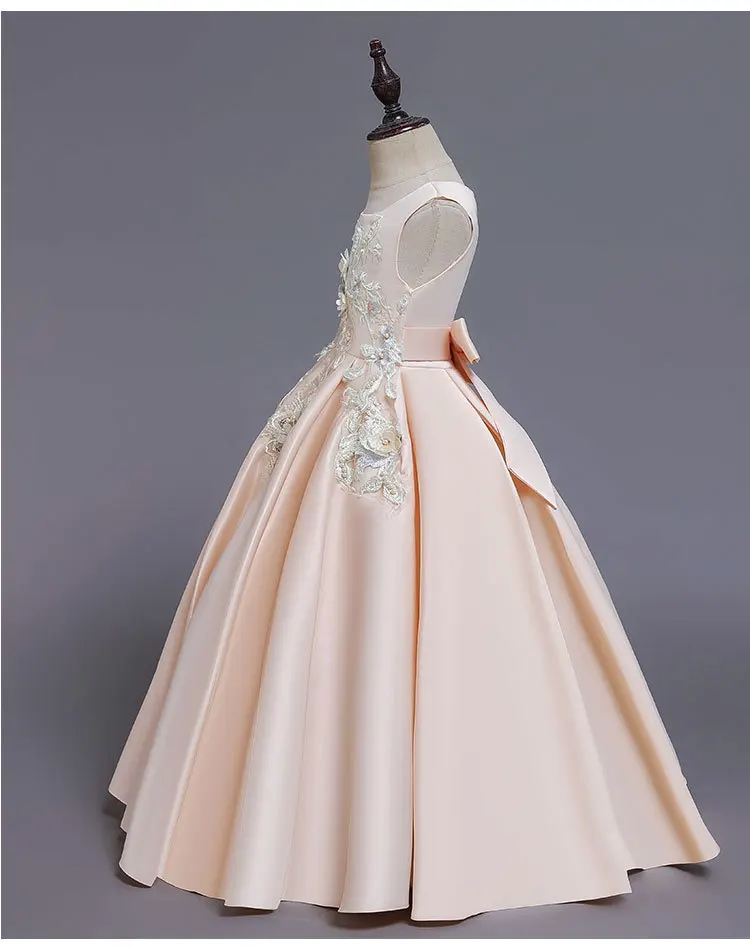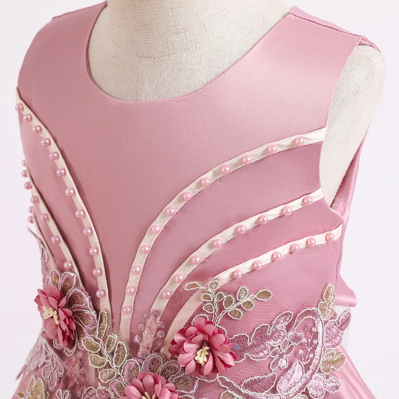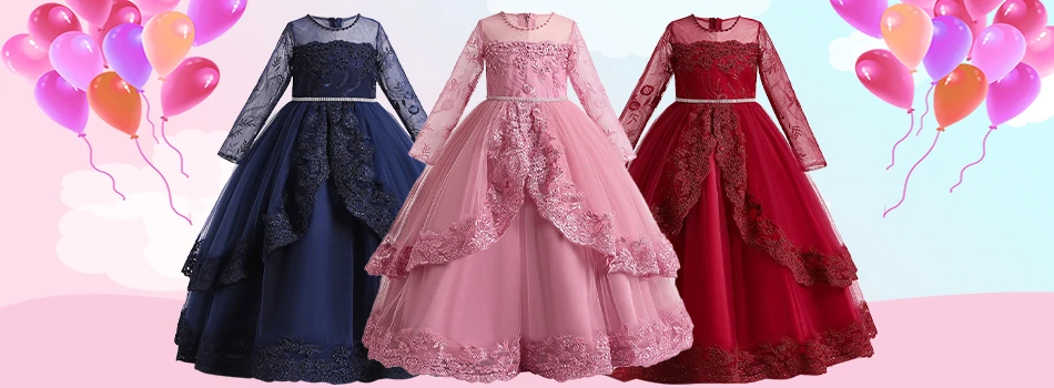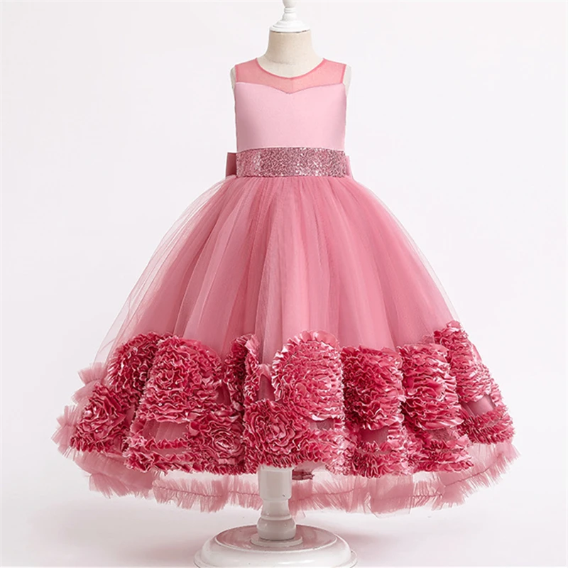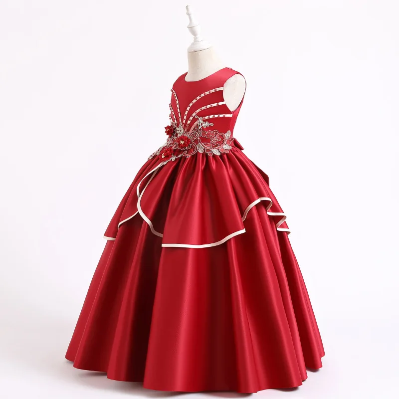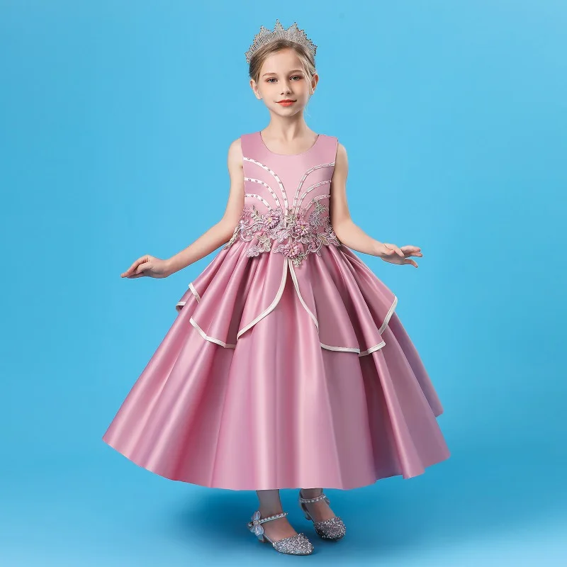 Новинка 2022, кружевное платье принцессы, детское длинное платье с цветочной вышивкой для девочек, детское официальное бальное платье, платья для свадебной вечеринки