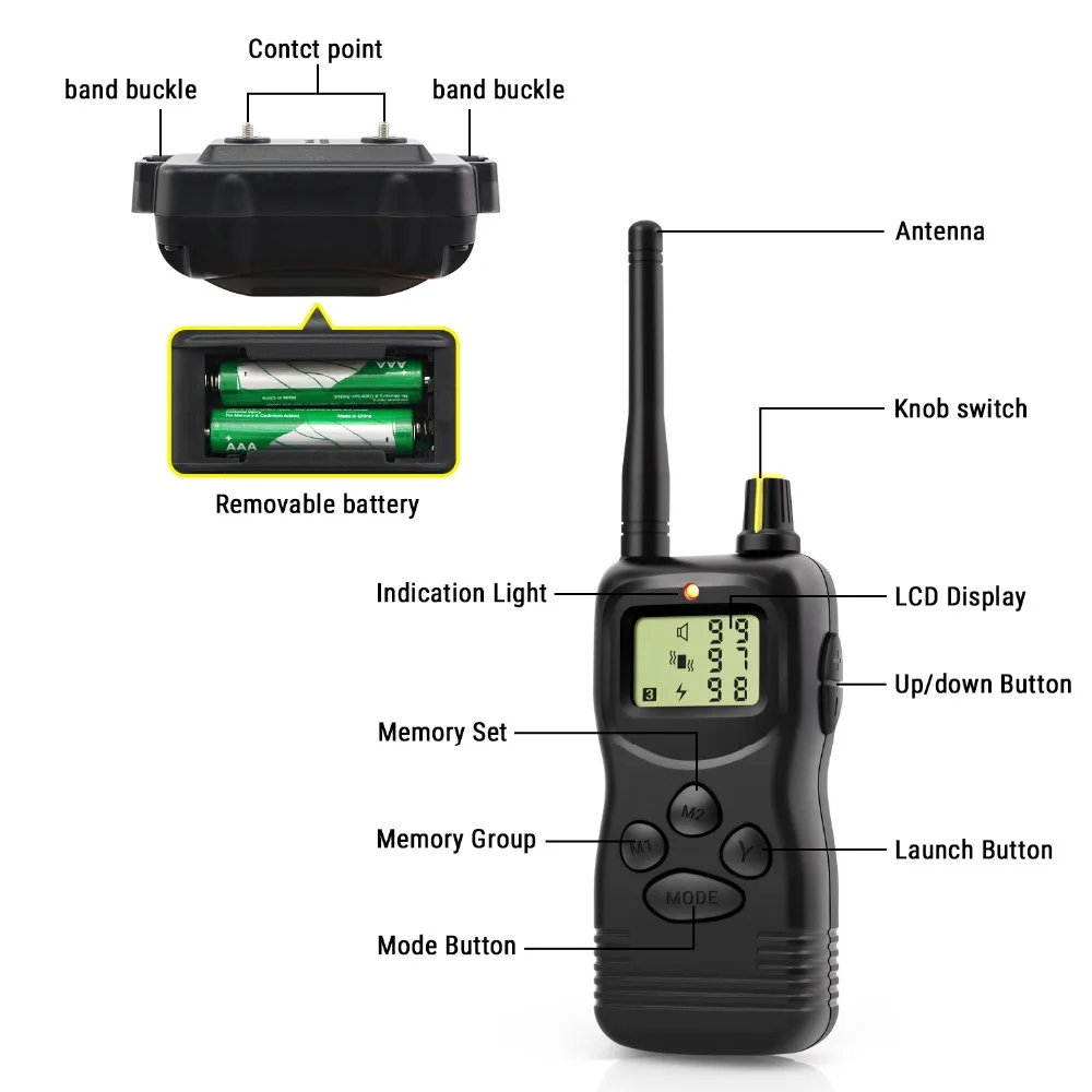 Ошейник Petrainer PET900-это система с диапазоном 1000 ярдов, работающая от сменных батарей. Идеальный тренировочный ошейник для собаки для начинающего пользователя, который нуждается в надежной системе дальнего действия, чтобы контролировать свою беспорядочную собаку. Он содержит множество режимов, которые: шок, вибрация и звуковой сигнал. Каждый режим имеет 0-99 уровней интенсивности на выбор, чтобы убедиться, что владелец собаки находит правильный уровень для своего питомца.
