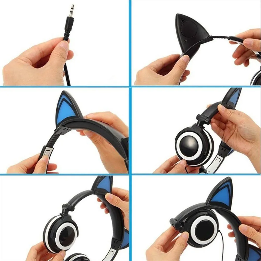 Наушники наушники "Кошка" со светсветильник кошачьими ушками, Проводная игровая гарнитура 3,5 мм для ПК, геймеров, мобильный телефон SP4, нового планшета XBOX