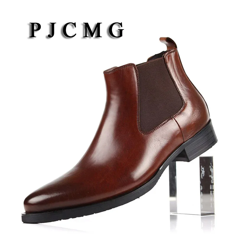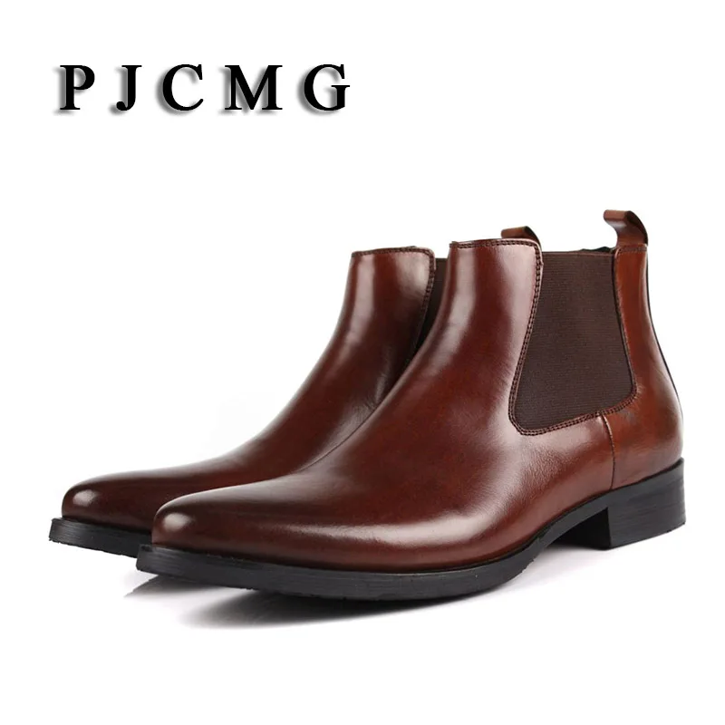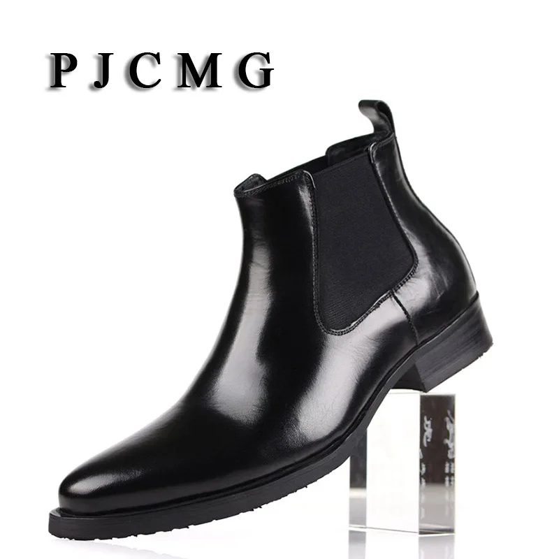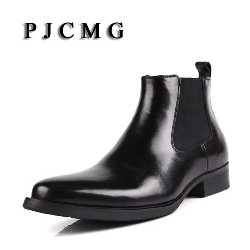 Мужские ботинки PJCMG высокого качества, черныекрасные водонепроницаемые ботильоны с резиновой лентой, повседневные военные ботинки из натуральной кожи с высоким берцем