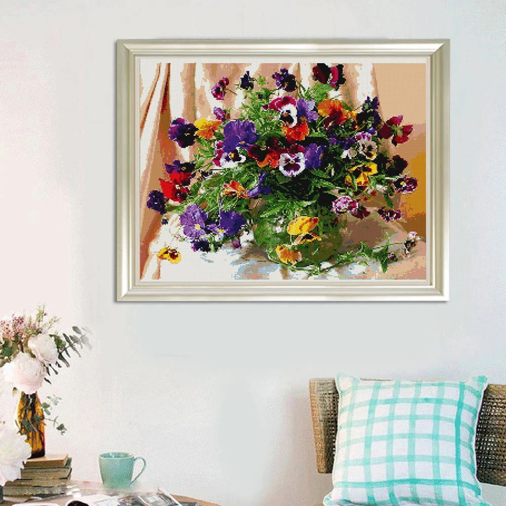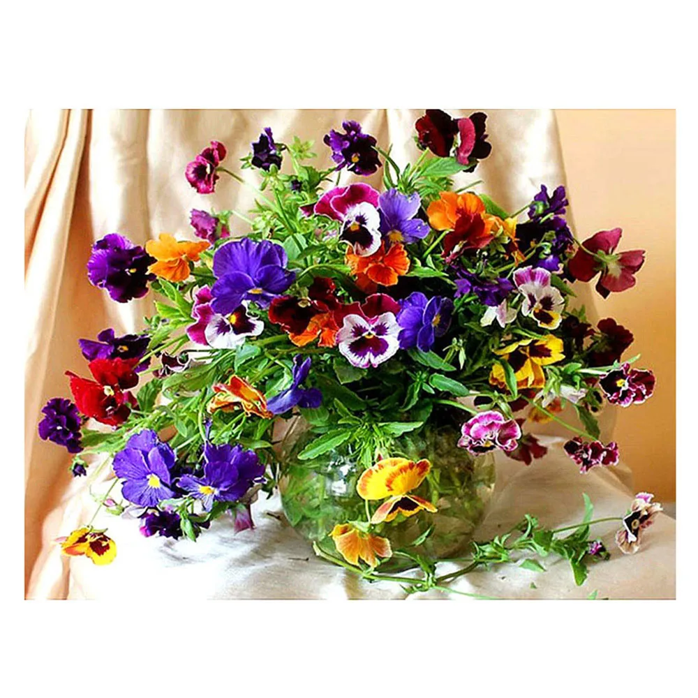 5D алмазная живопись полный квадрат круглый Алмазная вышивка цветок анютины глазки угол фиолетовый крестик Стразы мозаика пейзаж