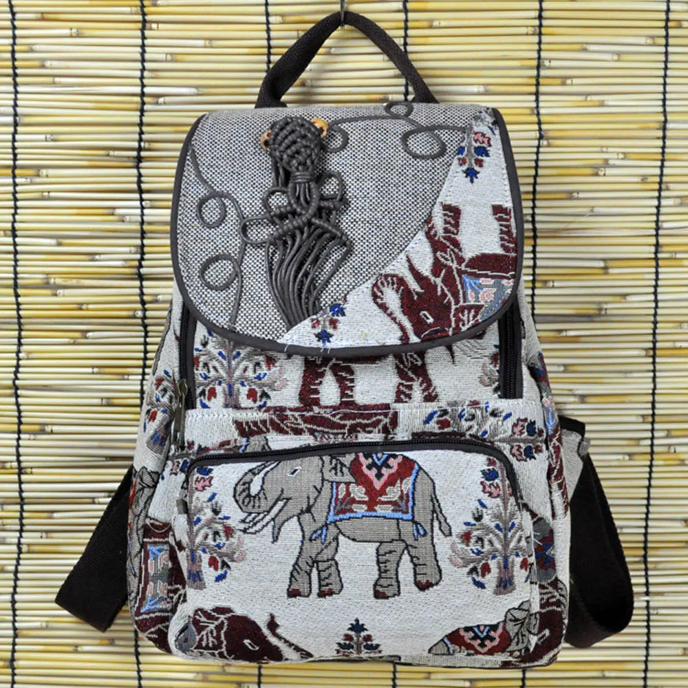 Женский хлопковый рюкзак Thail в стиле бохо, тканевый рюкзак с вышивкой слона, дорожная сумка на плечо, школьный ранец для женщин