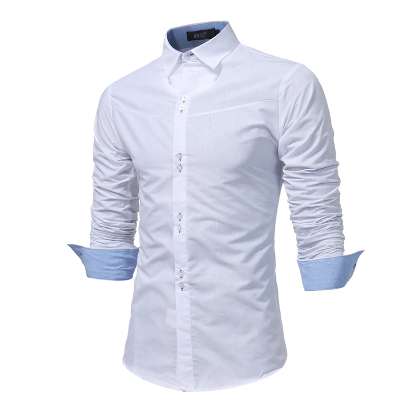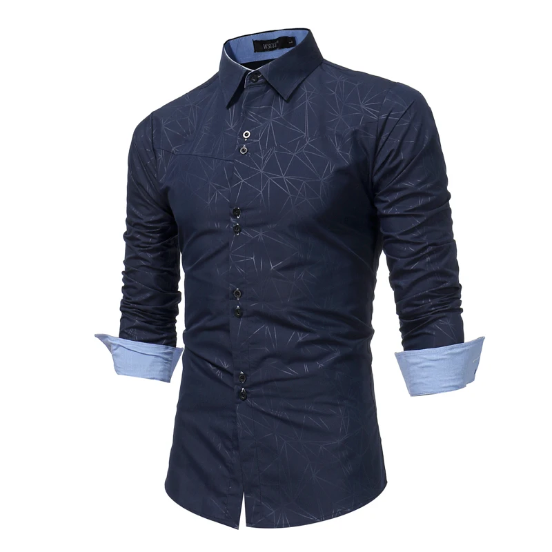 Мода 2017 г. мужской Королевский синий рубашка с длинными рукавами Топы корректирующие 3D Геометрические печати Повседневная рубашка Бизнес мужская одежда Рубашки для мальчиков тонкий