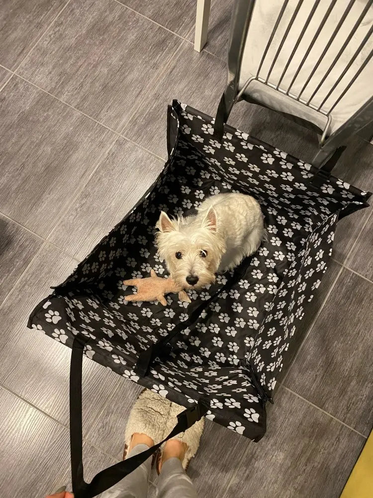 Идеально подходит для автомобиля, мы устали от очистки ворсинок с спины. Кроме того, наша собака очень удобная и адаптирована без каких-либо проблем