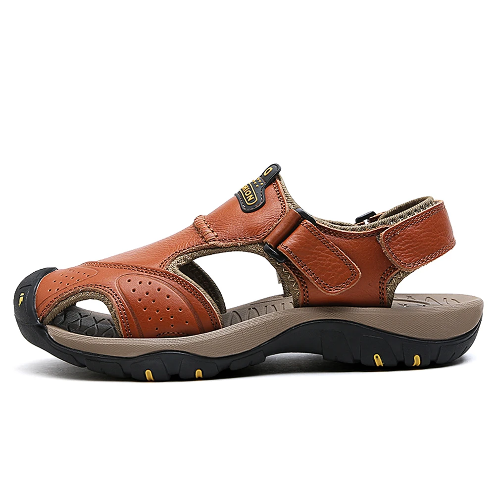 Летние кожаные мужские уличные сандалии; Пляжные сандалии; Удобные модные мужские дышащие резиновые сандалии; Sandalias Hombre; Большие размеры 46; 2019