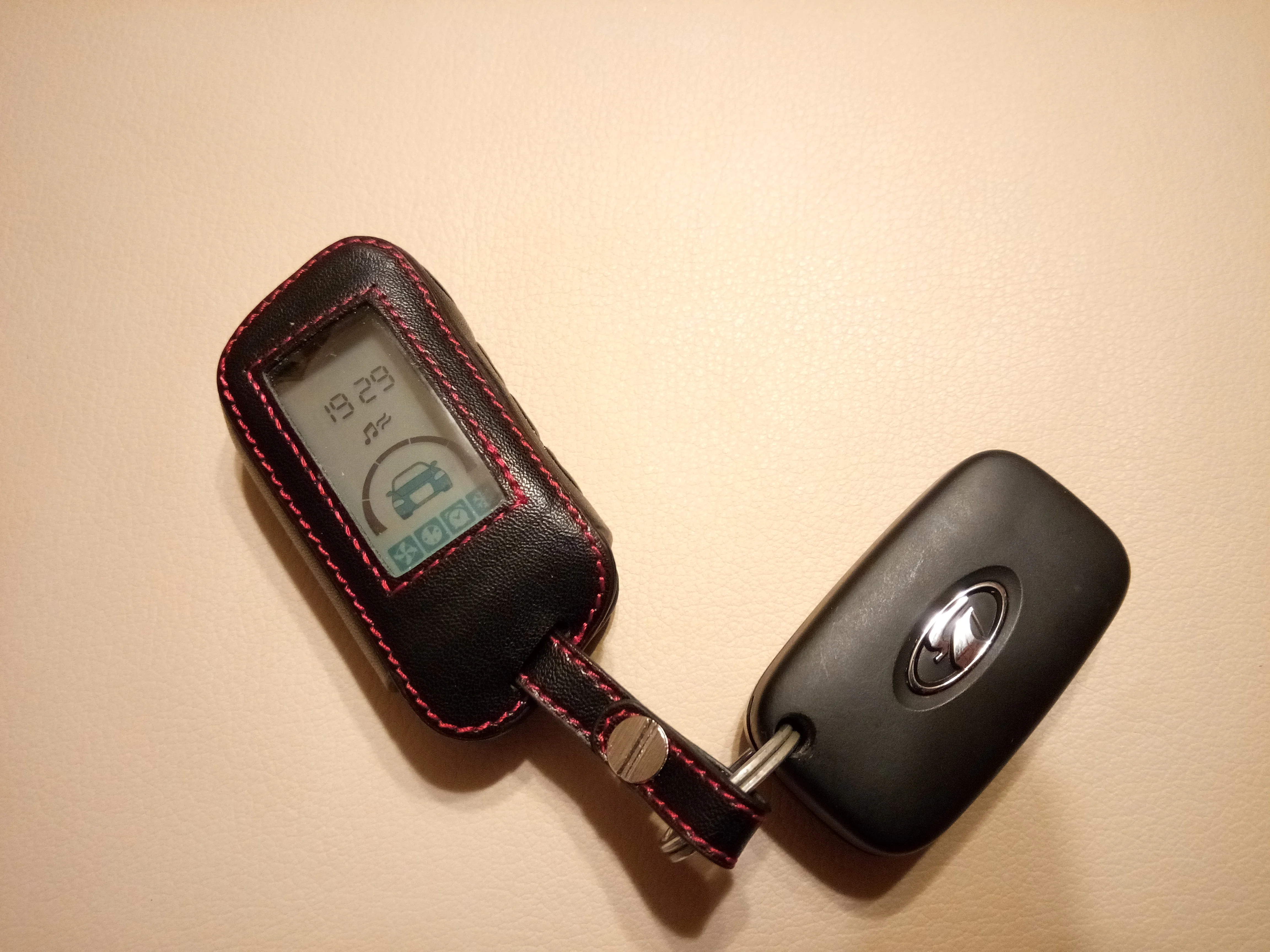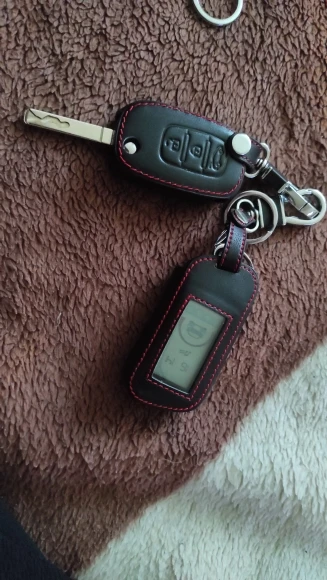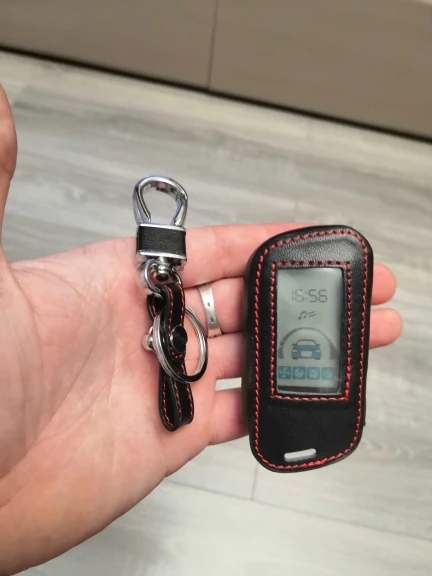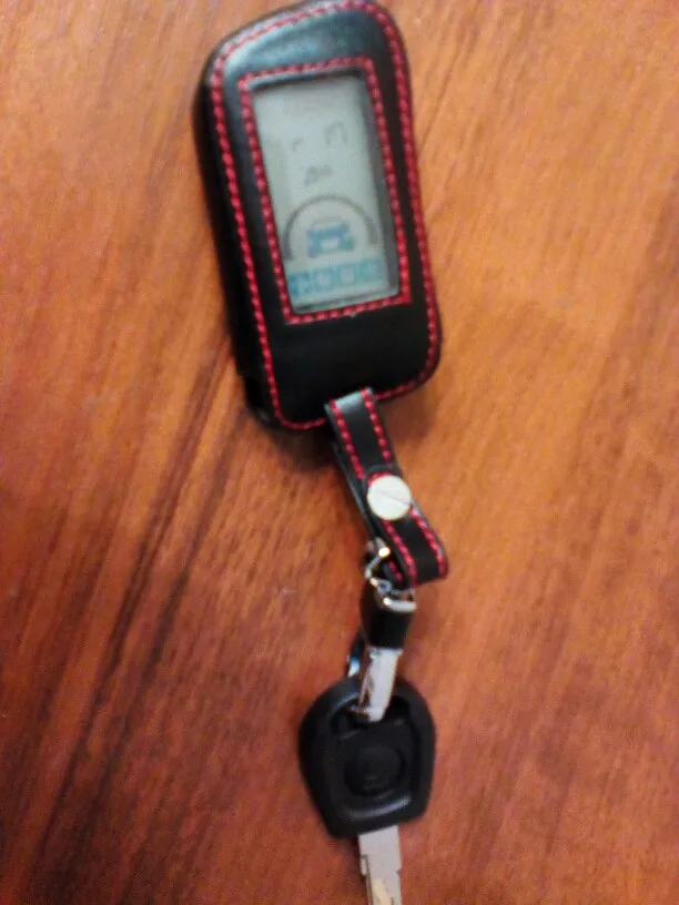 Отличный чехол для сигнализации. Заказываю второй раз (на первой потерял хлястик). За почти год использования никак не изменилась, очень качественная. Не уверен, кожа ли это, но это и не важно. На сигнализацию садится плотно, оспользованию никак не мешает. доставка быстрая (объединили с другими посылками) Не дорого и качественно, рекомендую.