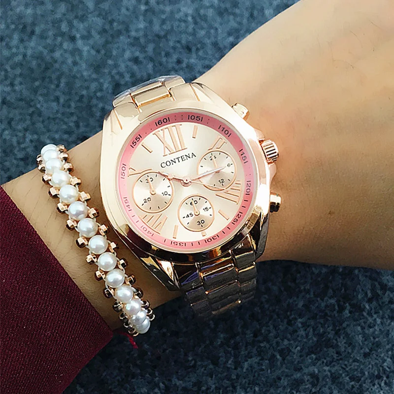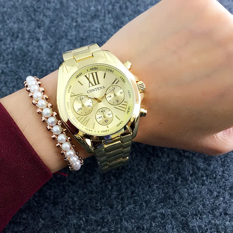 Новые роскошные женские часы Contena, элегантные золотистые Деловые женские часы, роскошные женские часы