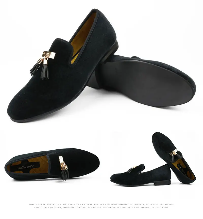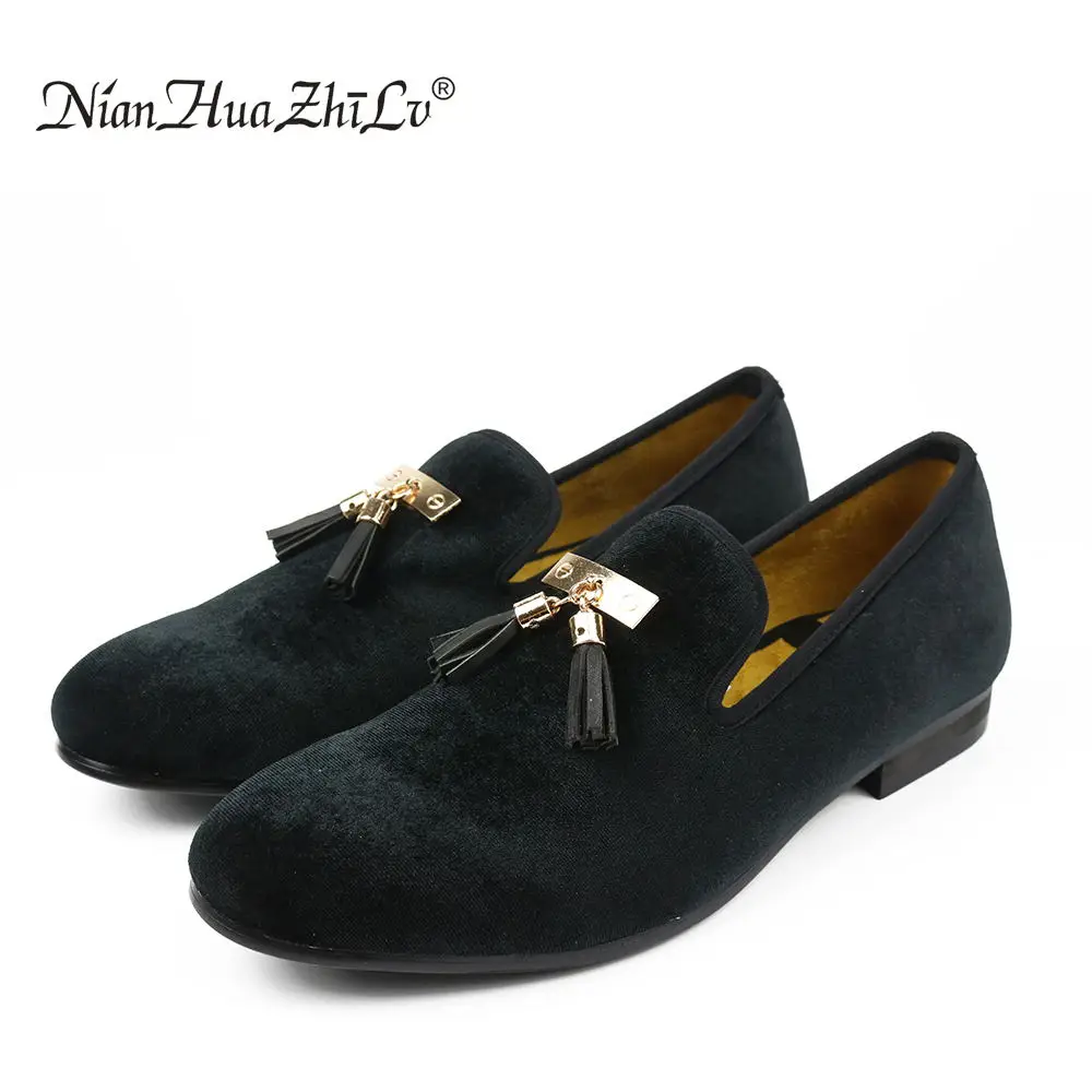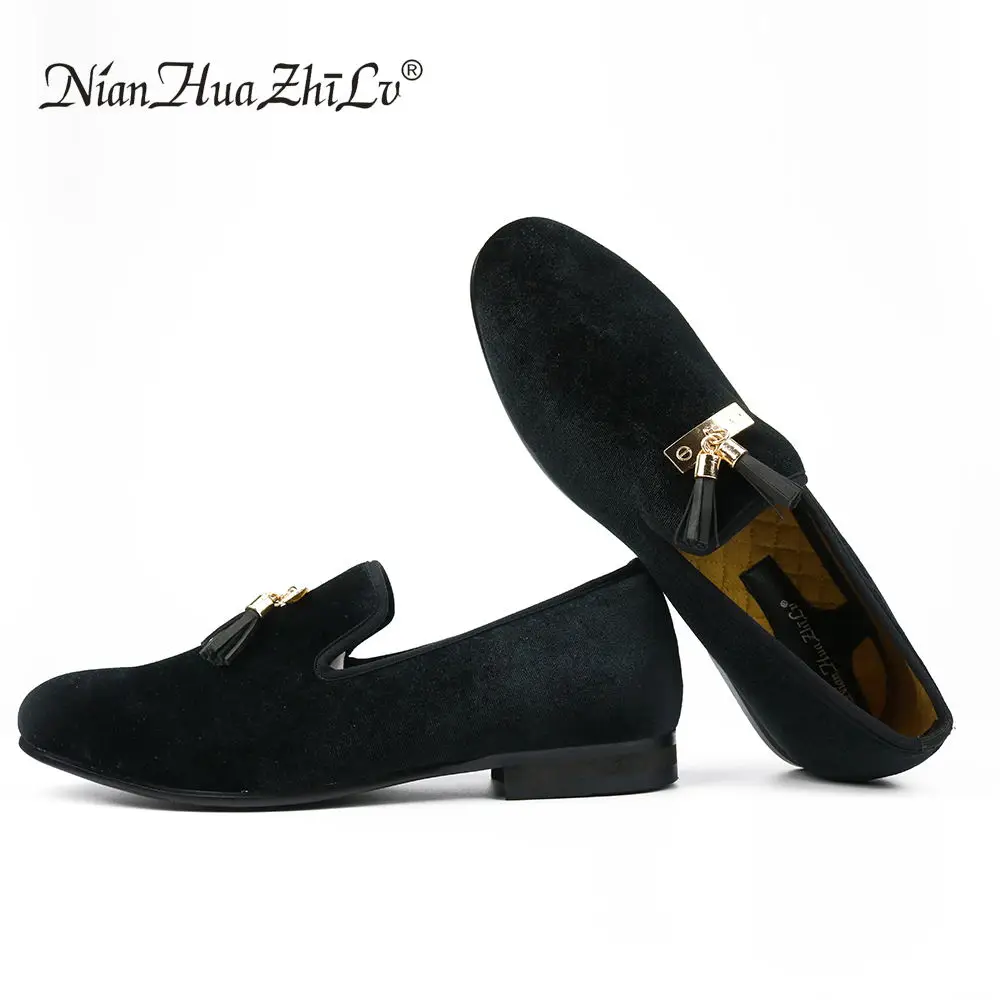 Мужские бархатные туфли с бахромой, черные Повседневные Дышащие лоферы на плоской подошве для курения, свадебная обувь