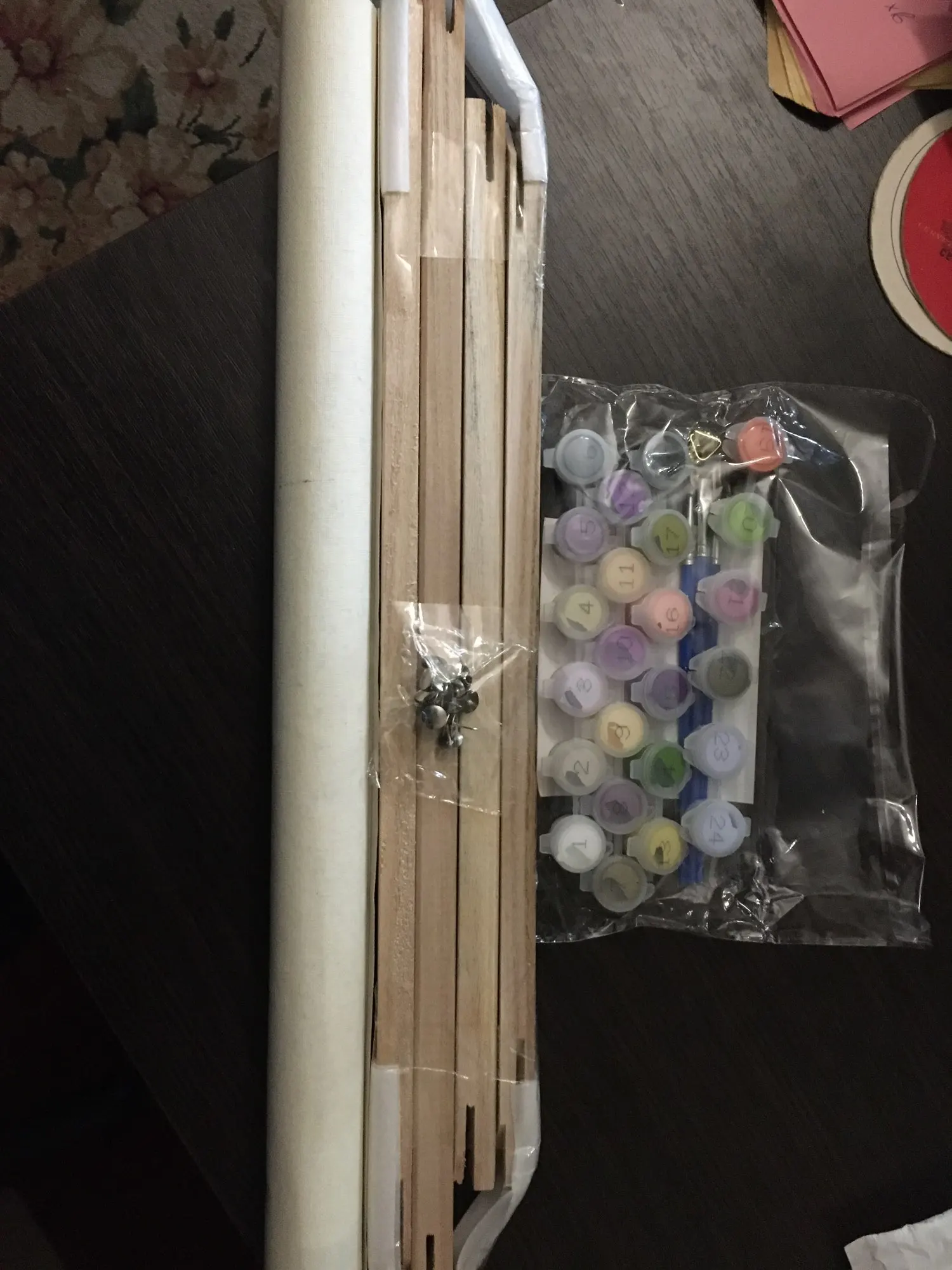 5+!!! Отличный продавец и отличный товар! Отправлен в тот же день. Доставил курьер до дверей раньше положенного срока. Упаковка на 5+!!! Пупырчатый плотный пакет. Холст намотан на плотный вспененный полиэтиленовый цилиндр. Состояние идеальное. Полиграфия довольно четкая и читаемая. Краски не открывал пока, чтоб не высохли до начала работы. При нажатии баночки мягкие, а значит не сухие. Цвета натуральные. Если бы были кислотными то хуже была бы укрывистость. Белый очень порадовал. Начинается от холодного и далее идёт молочный и переходит в градации разных оттенков. Три разных кисти и два подвеса для рамки. Заказывал без рамки. Постараюсь позже дополнить отзыв и описать укрывистость краски. Но думаю всё будет хорошо. Большое спасибо продавцу!!! Рекомендую всем!