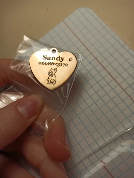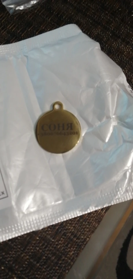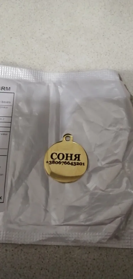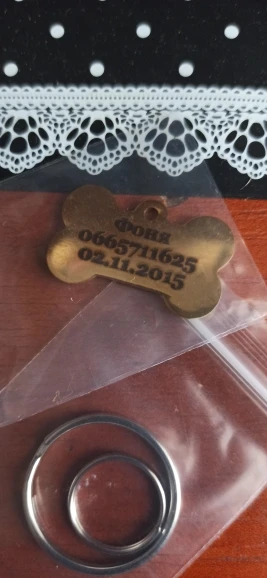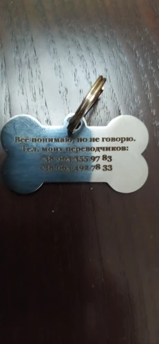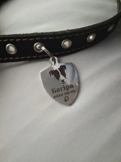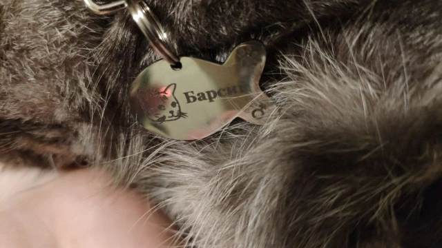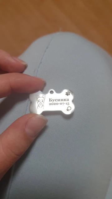 По-перше, моє прохання скинути попередній вигляд кулона перед друком продавець проігнорував. Вірніше, він відписав мені на наступний день після відправки, тому я навіть не знала, шо мене очікує. По-друге, фронтальна частина кулону трохи надрукована на бік, але це не критично. З мінусів - за малюнок і надписи дуже чіпляється шерсть, якщо витирати навіть безшовними серветками - на них залишаться ниточки. Але я думаю покрити прозорим лаком, щоб поверхня не була такою шершавою. Для кота розмір М буде завеликий і заважкий, краще брати S. Вцілому, на ці кошти я дуже задоволена, бо в моєму місті ця послуга коштує в 4 рази дороще.