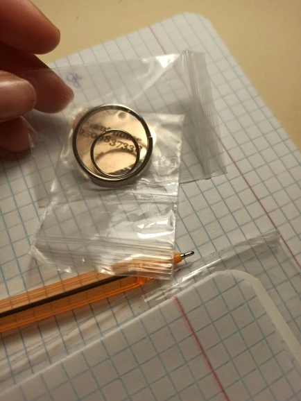 Очень быстро приехал. Металлический, толстый, увесистый. Очень понравился))) В наборе 2 колечка, но они не прочные.