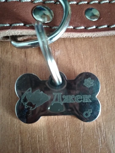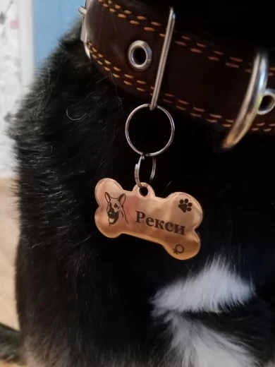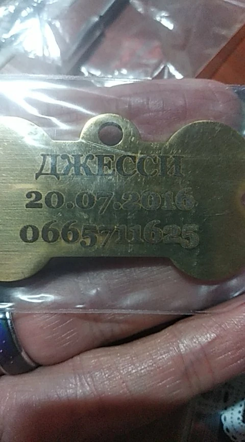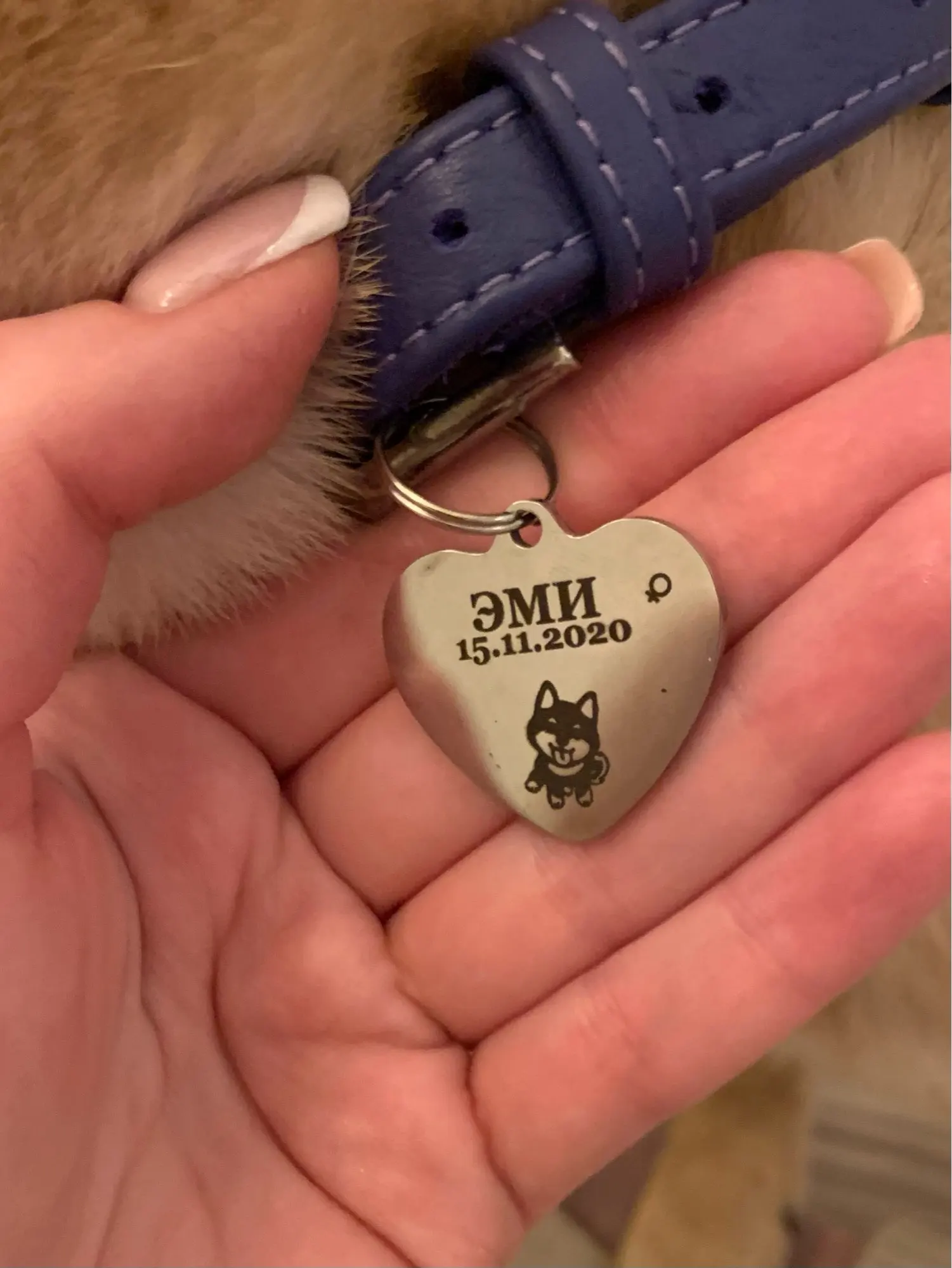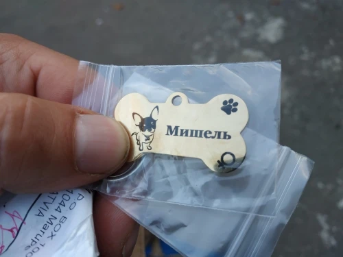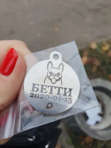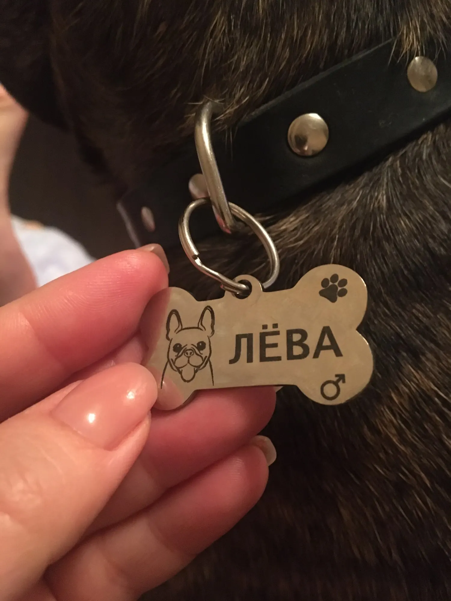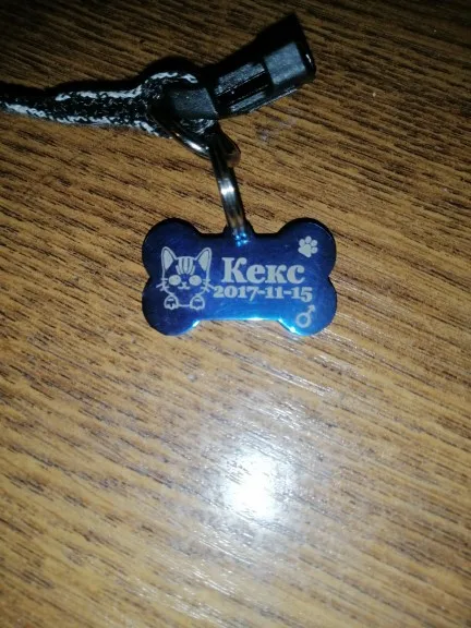 Адресанте сделали очень быстро и качественно. Выглядит просто ОЧЕНЬ хорошо и стильно, не колхознО. Вся нужная информация поместилась на него. Я очень довольна этим заказом, пожалуй, это самый удачный мой заказ здесь, от которого реально была польза, потому что в «4 лапы» и других русских зоомагазинах только жетон стоит 600-800₽, не говоря уже о гравировке.