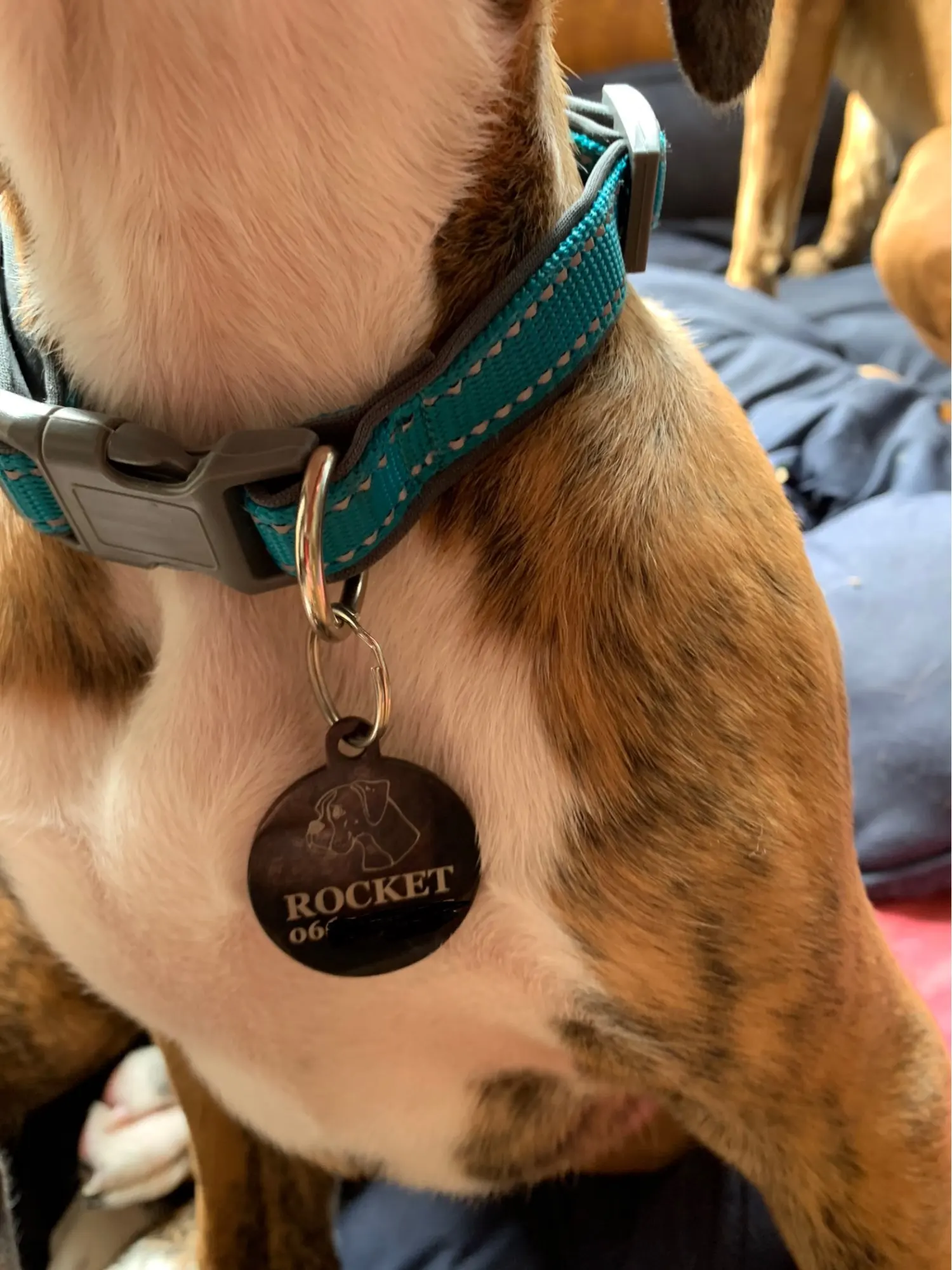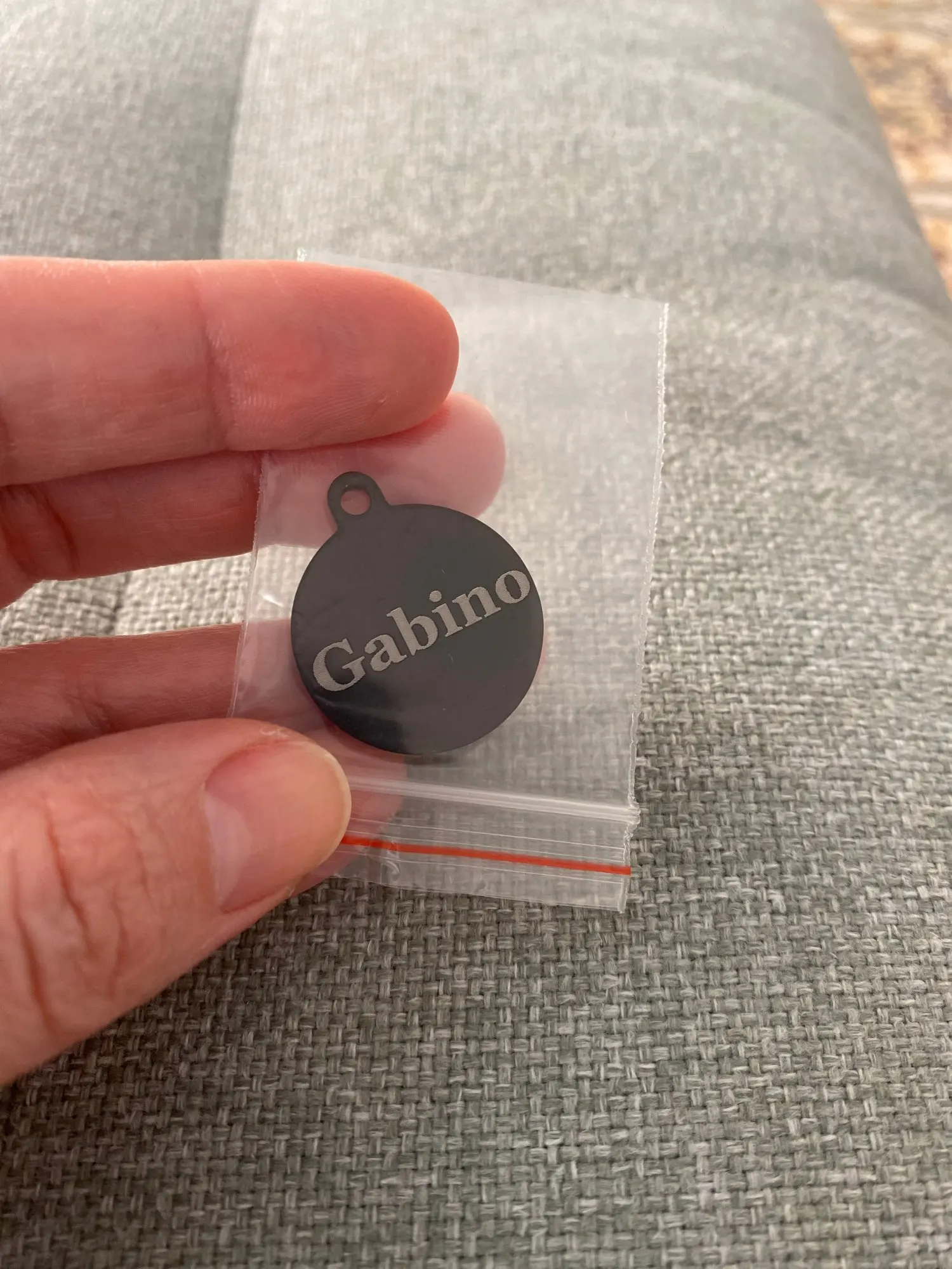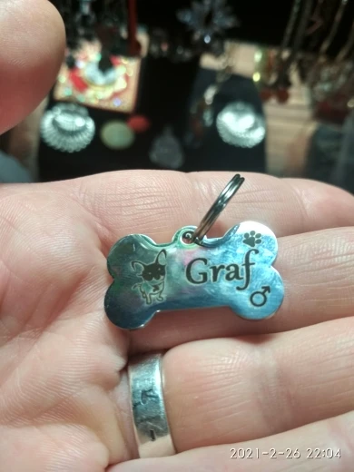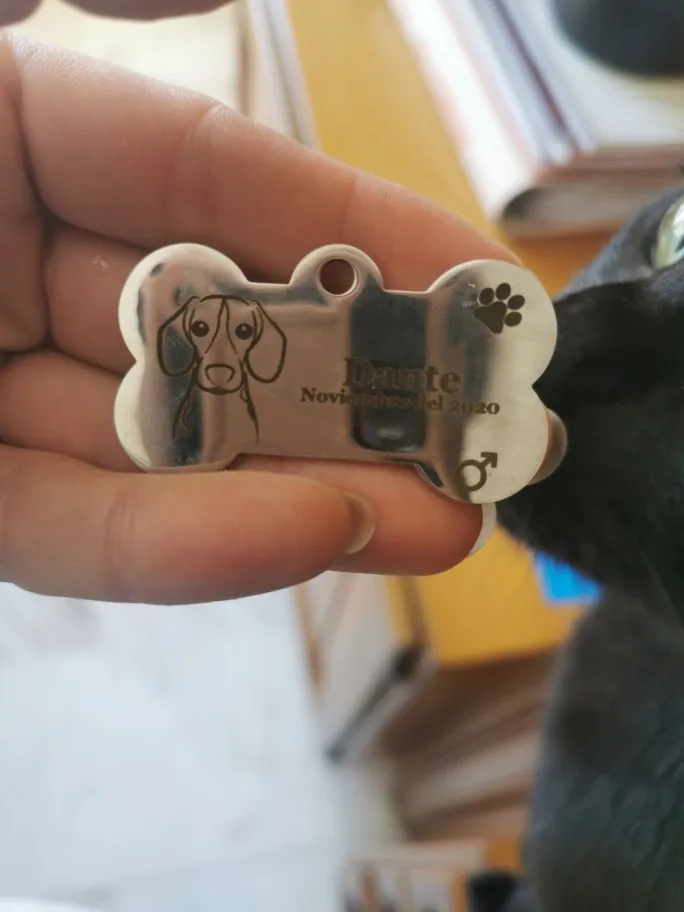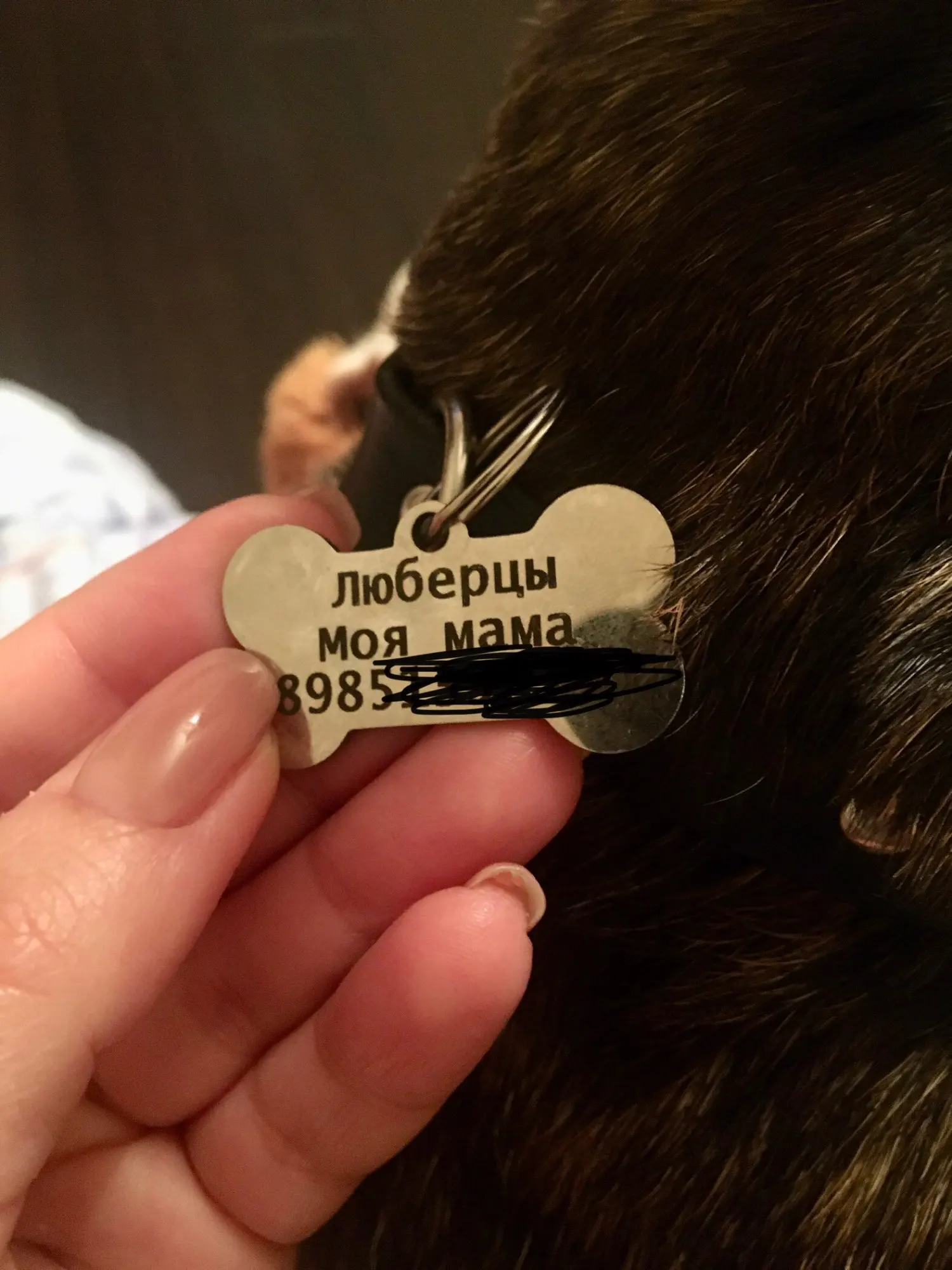 Адресанте сделали очень быстро и качественно. Выглядит просто ОЧЕНЬ хорошо и стильно, не колхознО. Вся нужная информация поместилась на него. Я очень довольна этим заказом, пожалуй, это самый удачный мой заказ здесь, от которого реально была польза, потому что в «4 лапы» и других русских зоомагазинах только жетон стоит 600-800₽, не говоря уже о гравировке.