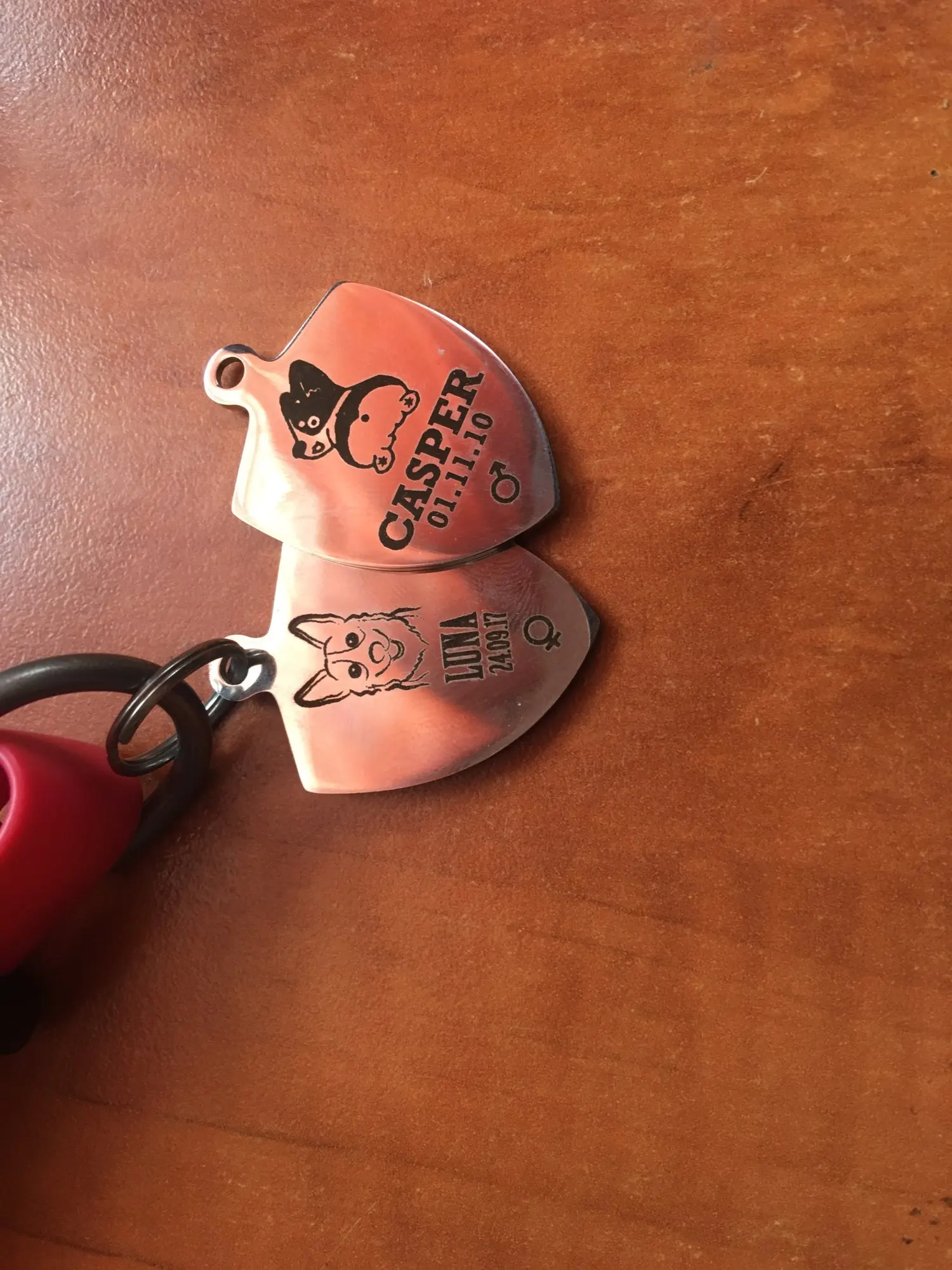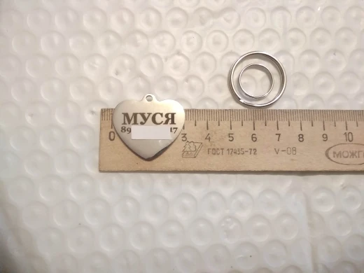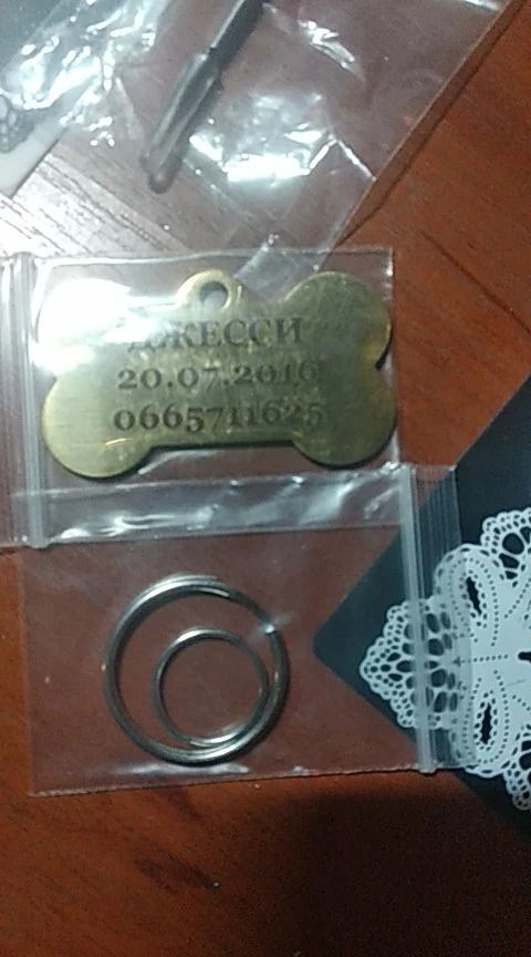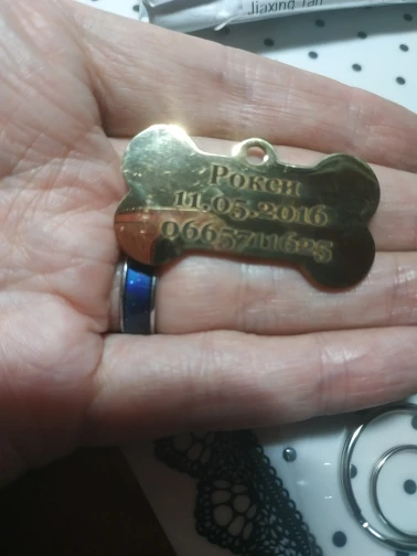 Это супер!!! За такую стоимость-такой отличный результат!!! Описание соответствует действительности. Продавец написал все то, что попросила. Металл не тонкий, не гнется. Адресник солидный получился. В комплекте два кольца, большое и маленькое. У нас от700 р. по городу с качеством похуже.