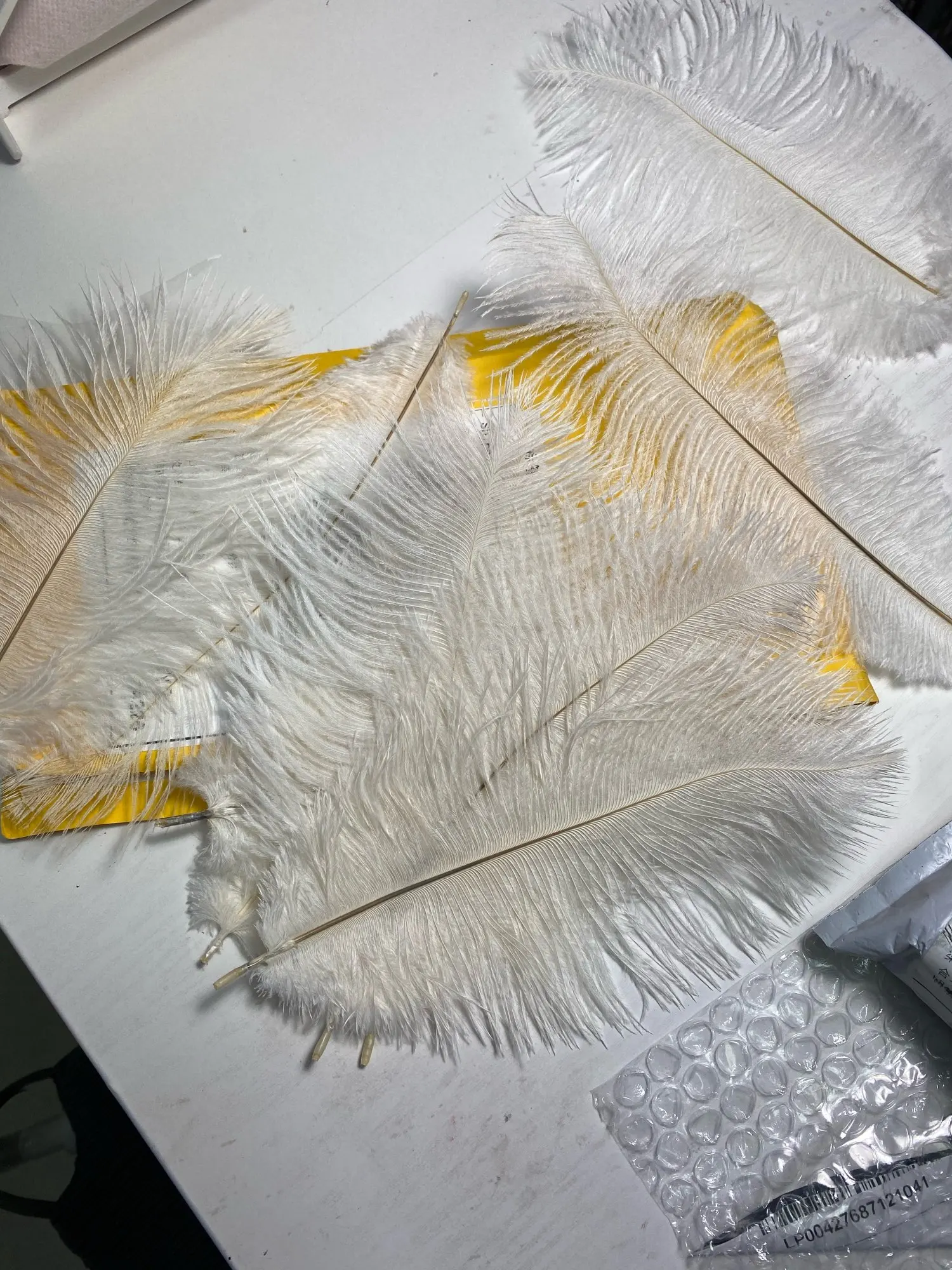 Все перья хорошо упакованы, пришли с палочкой что бы не помялись. Цвет слегка желтит. Пухлявость не такая как на фото, скромнее гораздо. Но можно использовать.