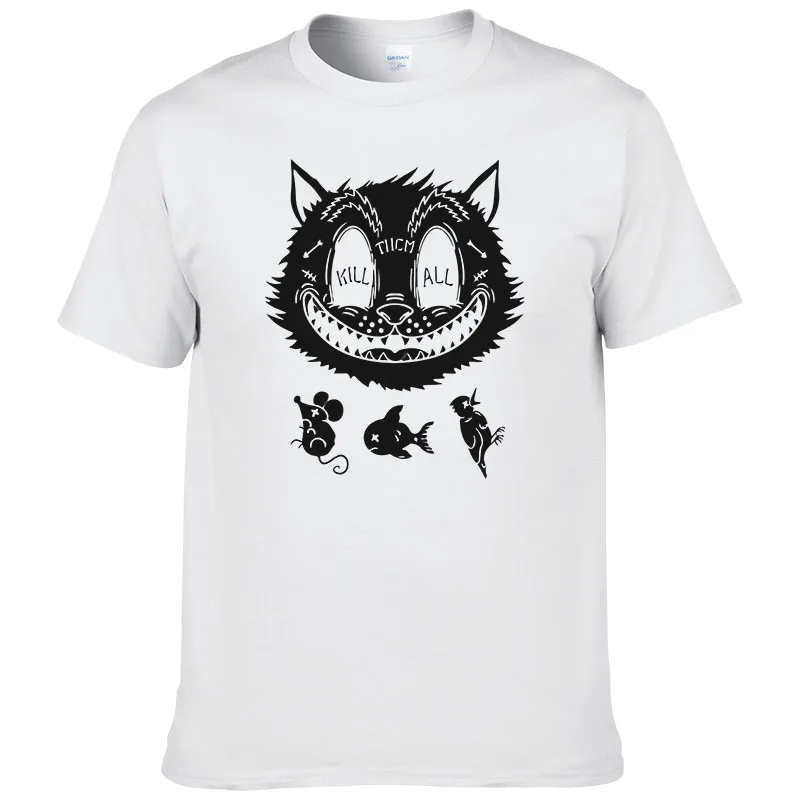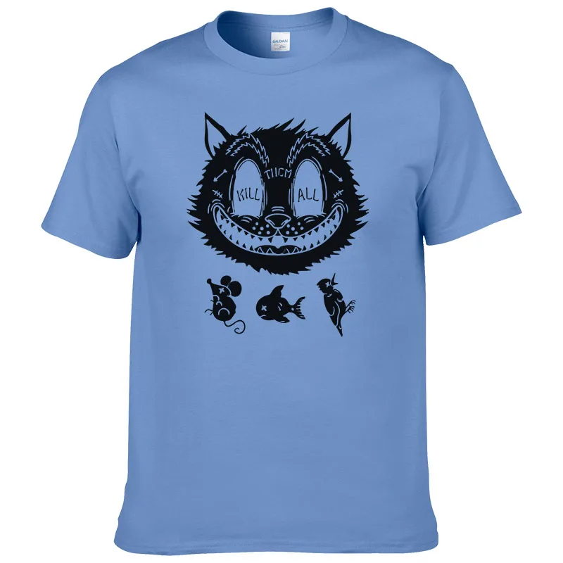 Новинка лета 2017, Мужская футболка, модная футболка с мультяшным животным, котом, убить всех, свободная стильная футболка с круглым вырезом и коротким рукавом, крутые футболки #235