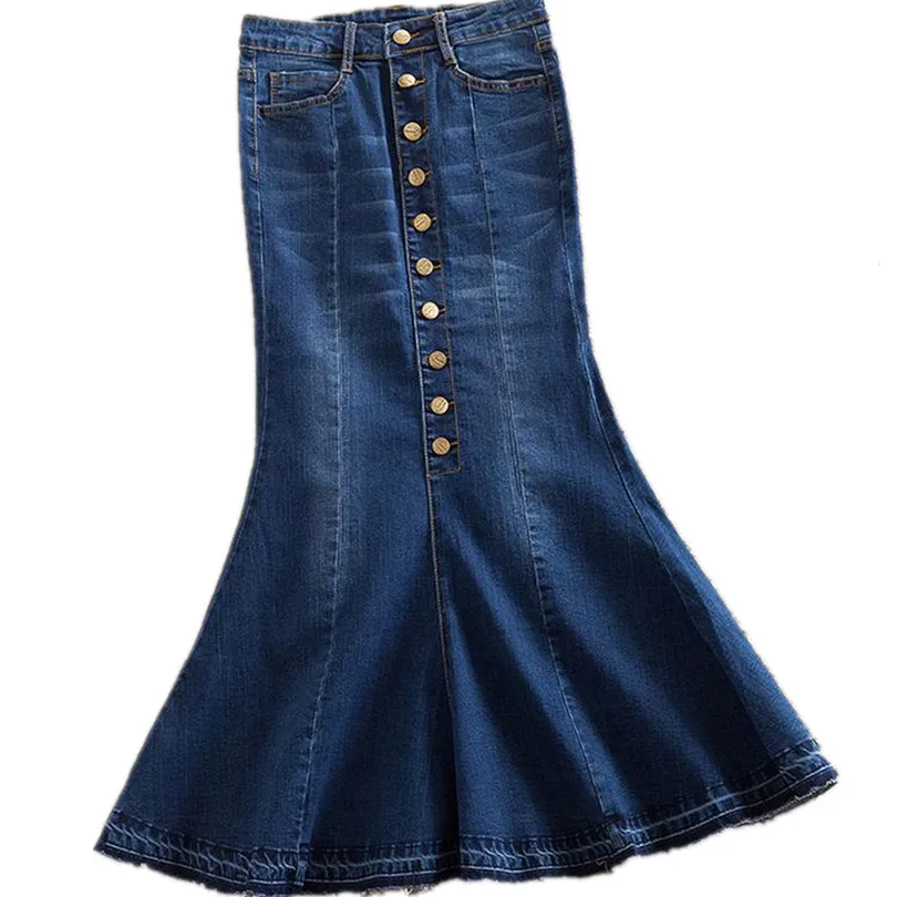 Женская джинсовая юбка с завышенной талией, длинная юбка-годе