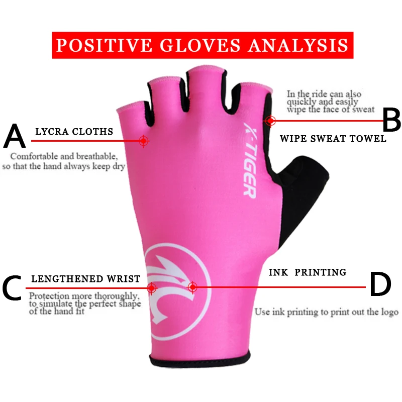 Женские велосипедные перчатки X-Tiger, Нескользящие противоударные спортивные перчатки с открытыми пальцами, с защитой от пота, для горных велосипедов