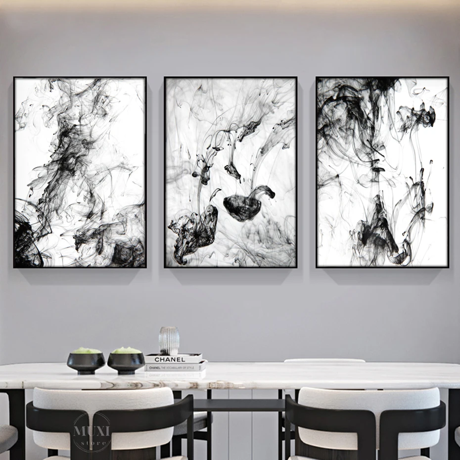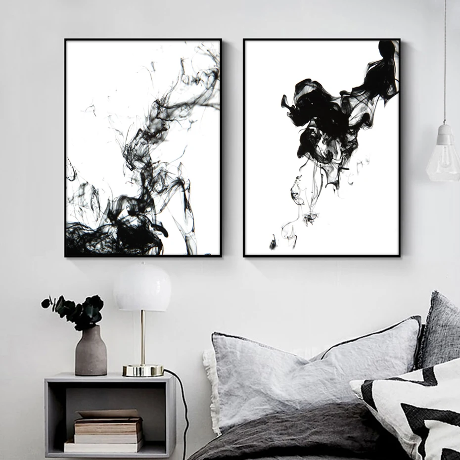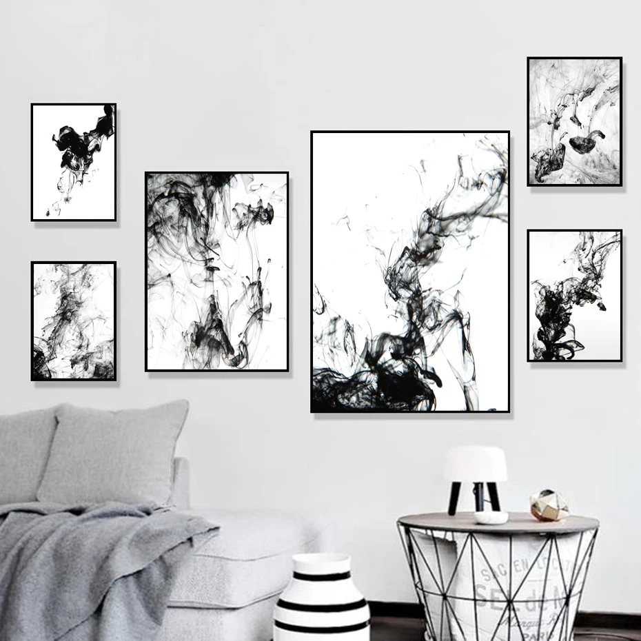 Минималистичная абстрактная черная белая динамическая чернильная фотография в скандинавском стиле Настенная картина декор для гостиной дома офиса