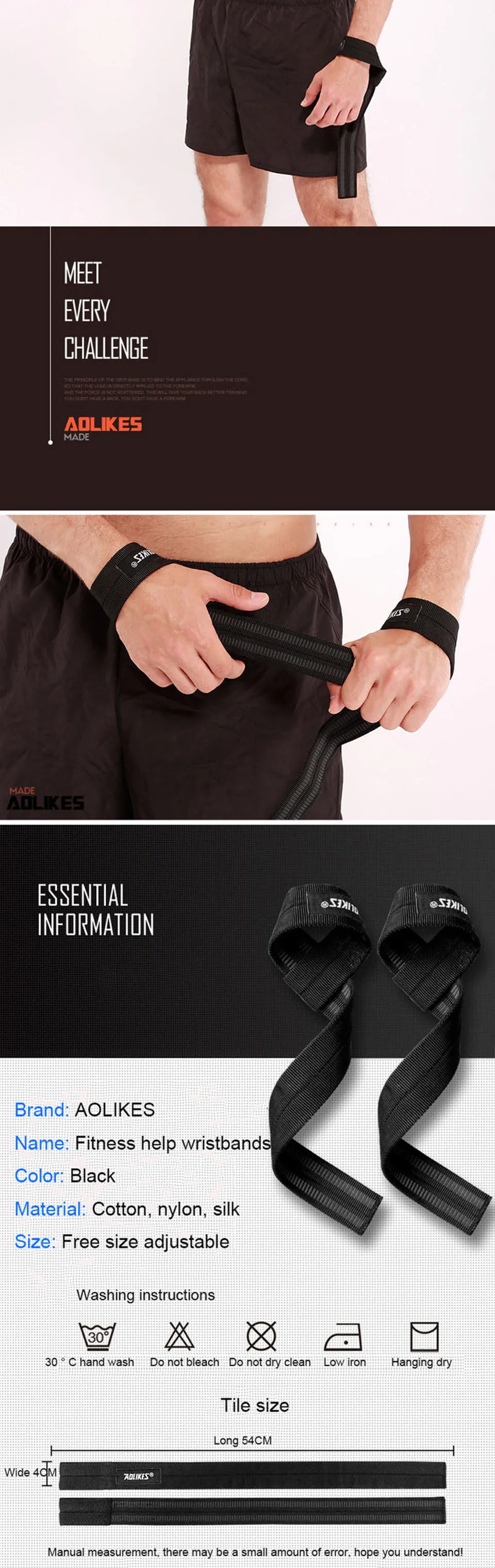 Регулируемый спортивный бандаж AOLIKES для запястья, фитнеса, для тяжелой атлетики, 1 пара