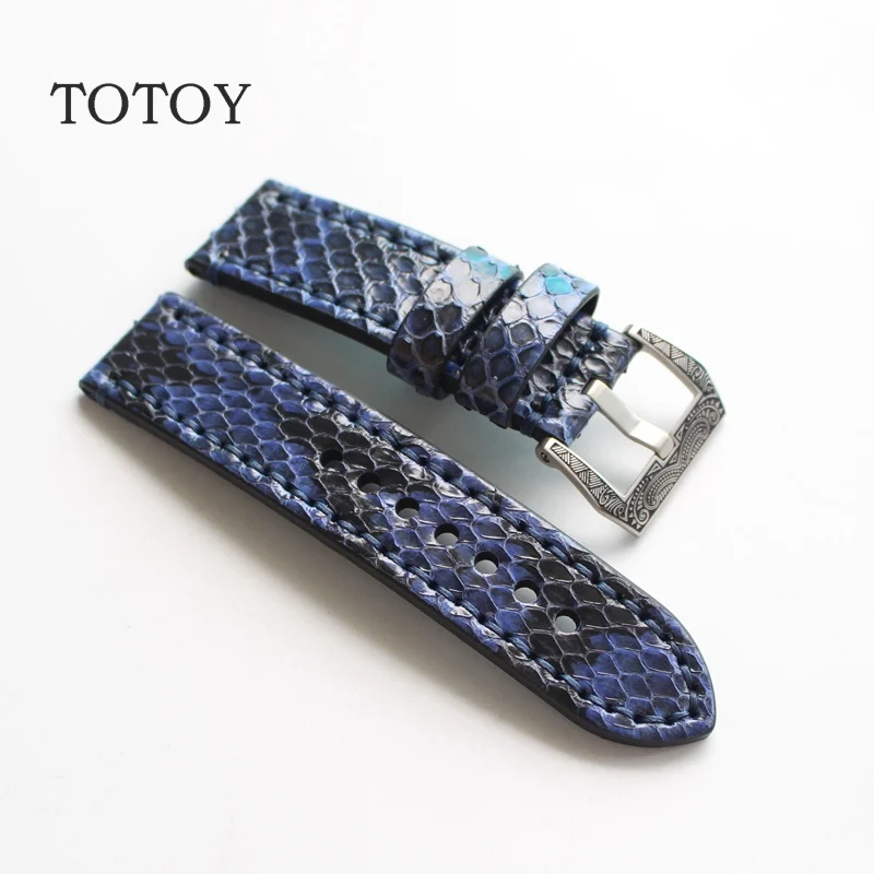Ремешок из кожи питона, браслет для часов в стиле ретро, синего цвета, подходит для PAM0441, 20 мм 22 мм 24 мм 26 мм